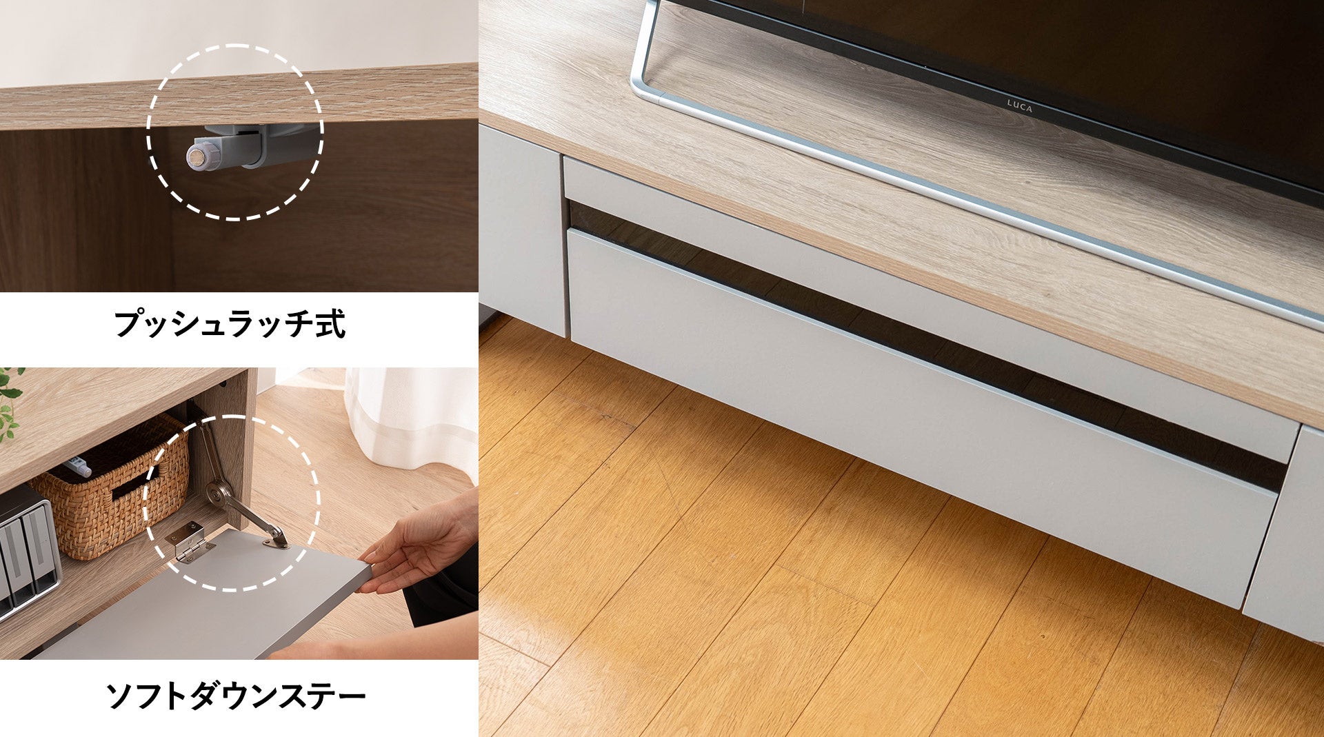 ミニマルなのに無機質でない心地よさ。ニュアンスグレー×オーク木目が織りなす上質で都会的な暮らしをリーズナブルな価格で実現したテレビボード『TONEA/トーニア』を販売開始!