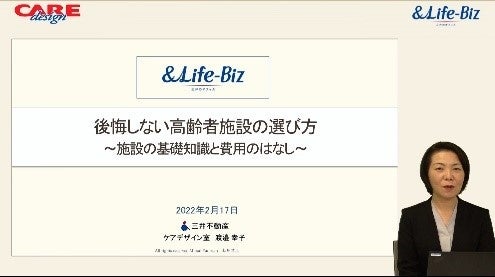 当社ケアデザイン室による介護セミナーを定期的に実施しています。2022年2月には、「後悔しない高齢者施設の選び方」をテーマに開催しました。高齢化が進み介護人口が増加する一方で、介護を理由に離職された方の約48%が「誰にも相談せずに」仕事を辞めているというデータ※もあることから、働く方々の課題に寄り添いながら、支えとなることを目指します。
