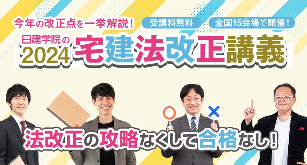 【2024年度 宅建士】毎年大好評「宅建法改正LIVE講義」全国15会場で無料開催!~今年の改正点を一挙解説!~