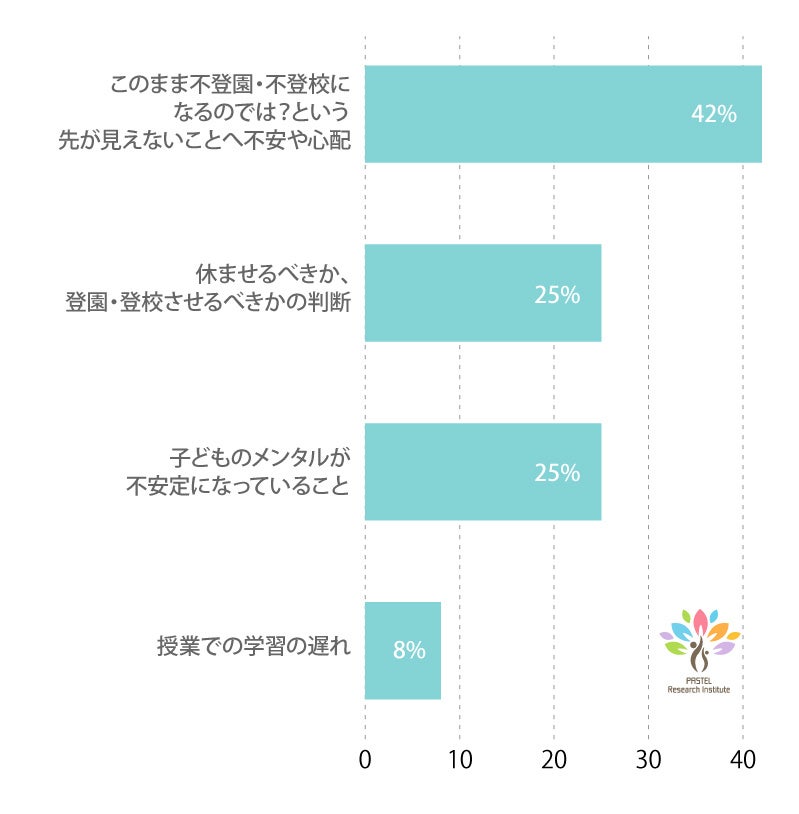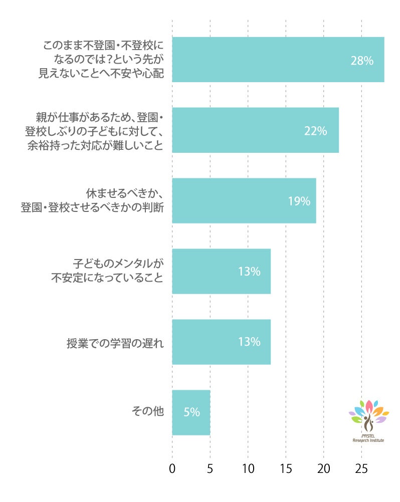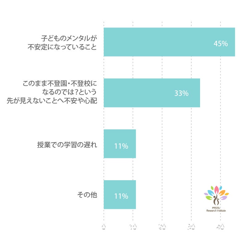 子どもが登園・登校しぶりで学校を休むと、子ども自身が辛い思いを抱えているのはもちろんですが、子どもを支える親も「この先どうなるのだろう」と不安や心配で悩んでいる保護者が多いことが分かります。