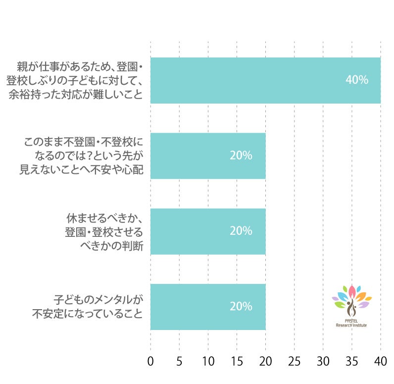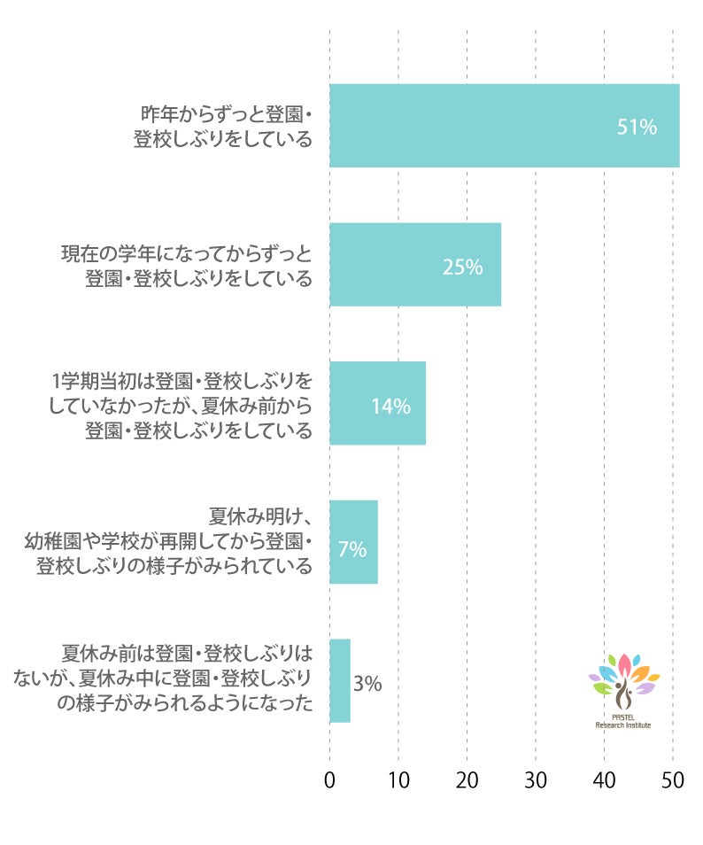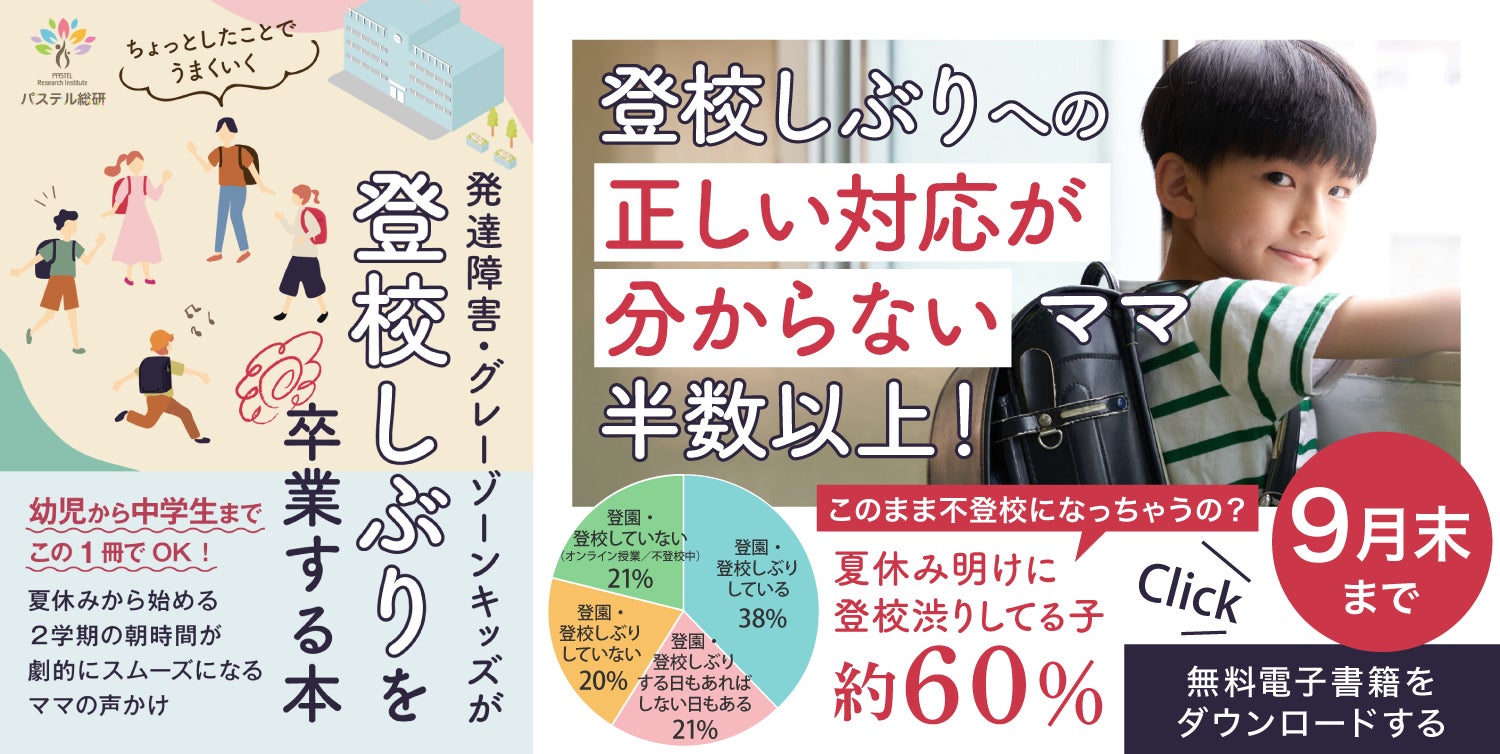 こんにちは。発達グレーゾーンの困りごとを大人に持ち越さない、5年かかっても見つからなかった悩みの解決方法が5分で見つかることを目指す「パステル総研」です。この度、パステル総研は2学期が始まってすぐに、保護者を対象に、夏休み明けの登園・登校しぶりに関するアンケートを実施しました。