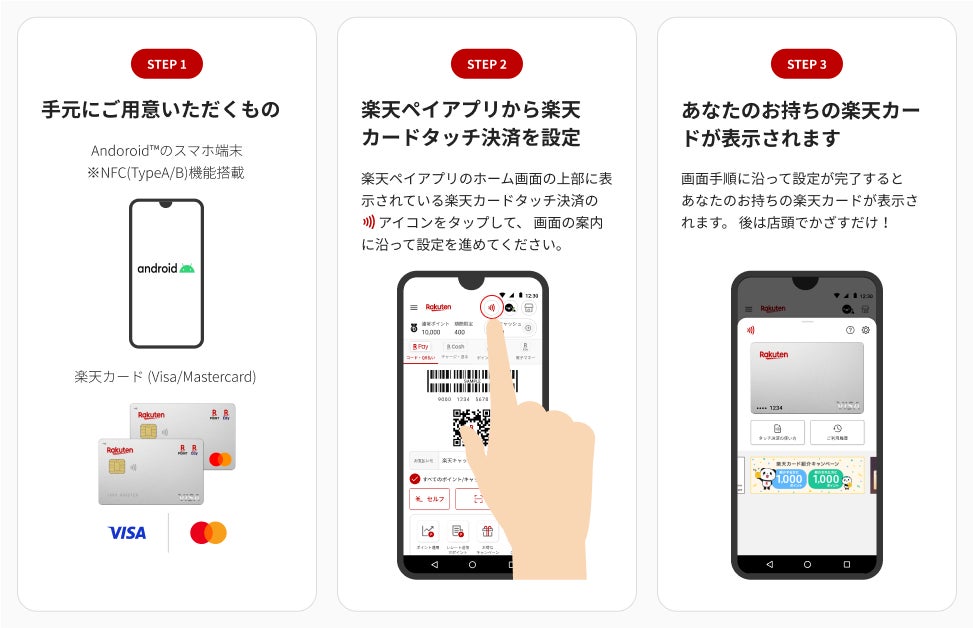 「楽天ペイ」アプリの「楽天カードタッチ決済」サービス概要:https://r10.to/h6HAWQ