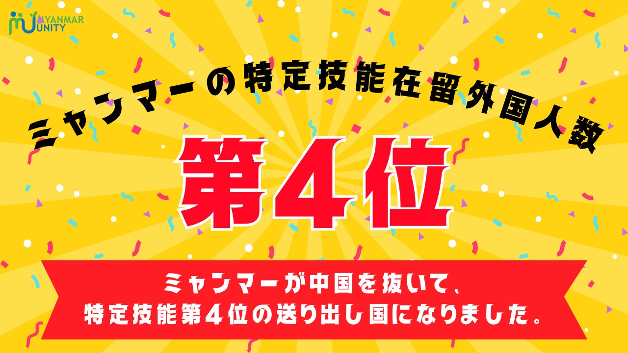 ミャンマーが特定技能第4位の送り出し国になりました。