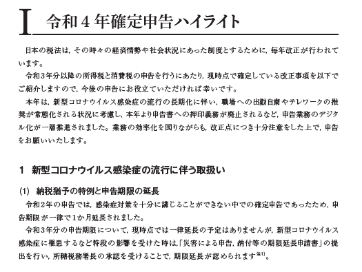 Ⅰ 令和4年確定申告ハイライト