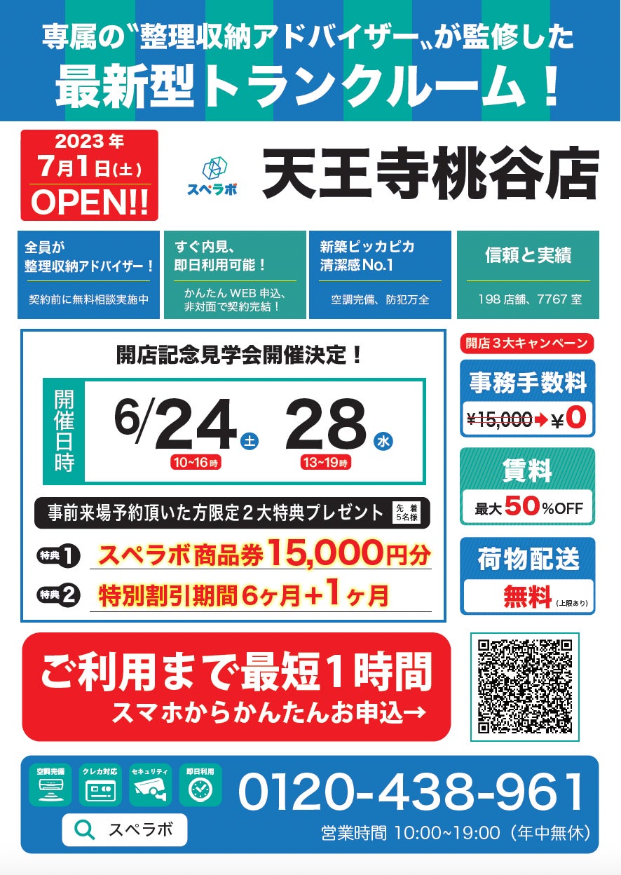 【天王寺桃谷店/7月1日(土)オープン】見学から契約、解約まで完全非接触・非対面、お申し込みからご利用まで最短1時間!都内、大阪などにて絶賛運営中のトランクルーム【スペラボ】が桃谷駅近くに出店!