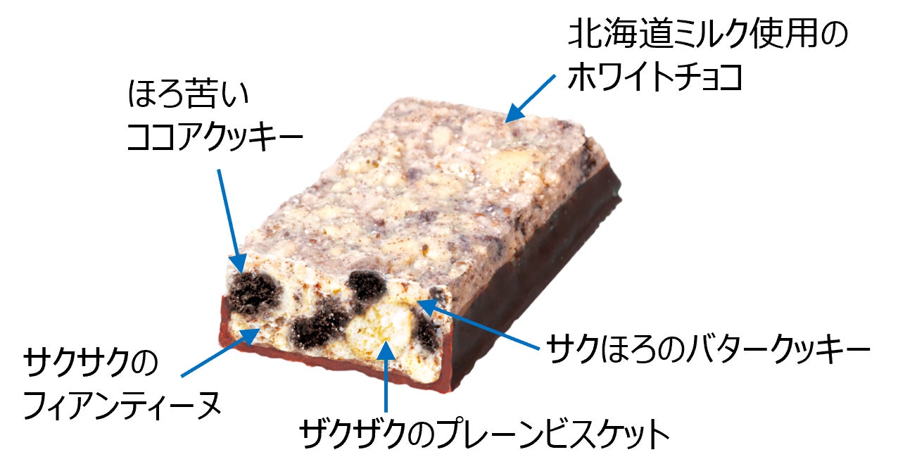 具材には、ほろ苦いココアクッキー、サクほろのバタークッキーとサクサクのフィアンティーヌを組み合わせることで、いつものブラックサンダーよりもかろやかな「ザクッ&サクッ食感」に仕上げています。かろやかで心地よい食感と共に広がる甘さとほろ苦さのベストバランスな味わいは、暖かくなり始める時期にもぴったりです。