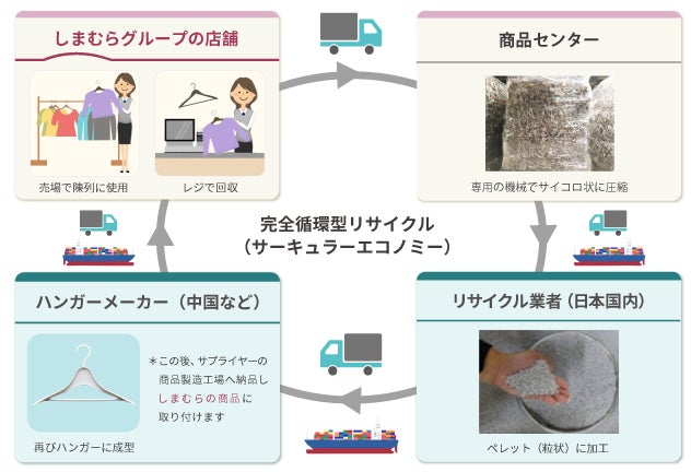 店舗で回収したハンガーやビニールをリサイクルし、再び店舗で使用する「完全循環型リサイクル」に取り組んでいます。