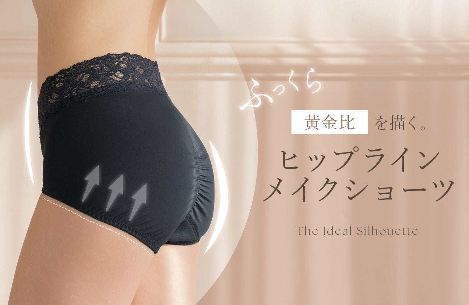 ヒップライン形成ショーツは、太ももとヒップの境目を優しく整えてくれる設計。