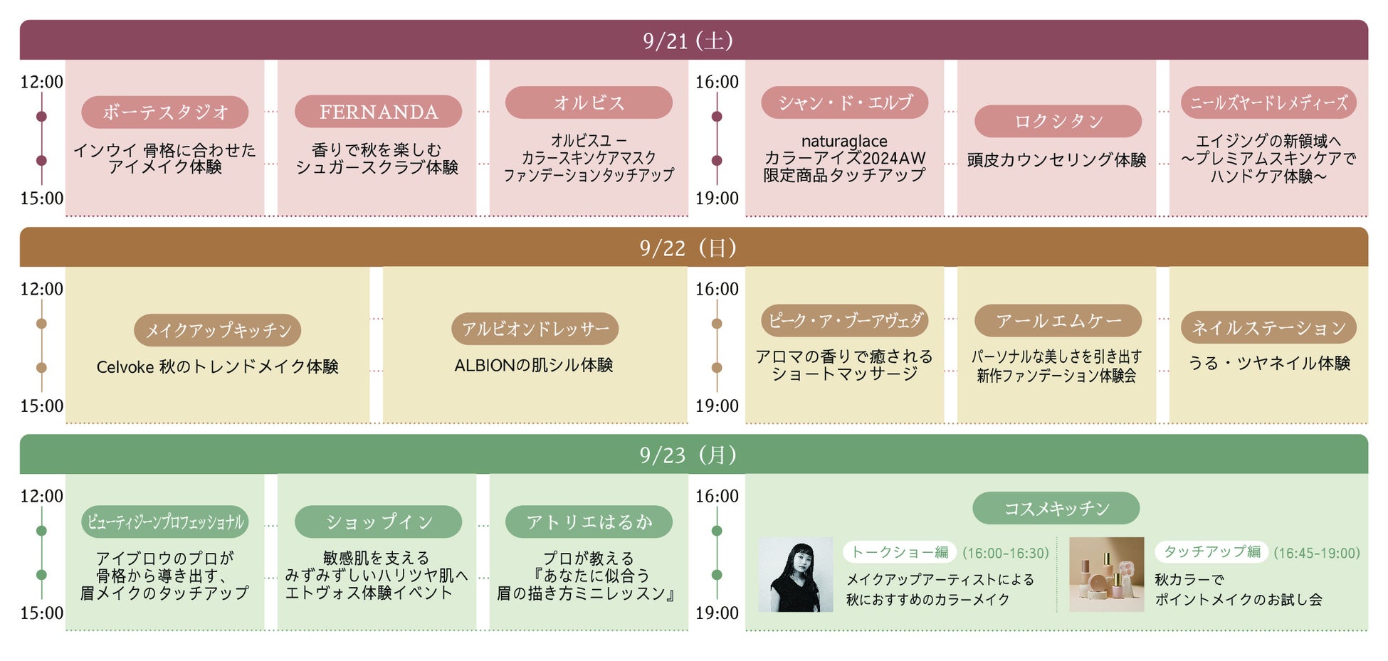 期間中、18のコスメ、ビューティーショップのプロフェッショナルが、秋の新作商品や最新のトレンド情報を用いたタッチアップやサービスを通して、一人ひとりのベーシックを引き出す、引き上げるアイデアを提案します。