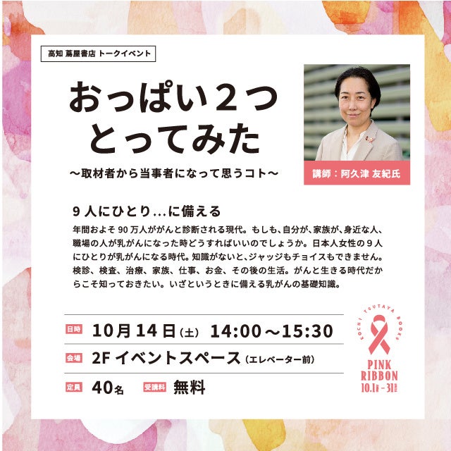 10月9日(月)ピンクリボントーク 『がんとお金』江別蔦屋書店にて 午後2時~