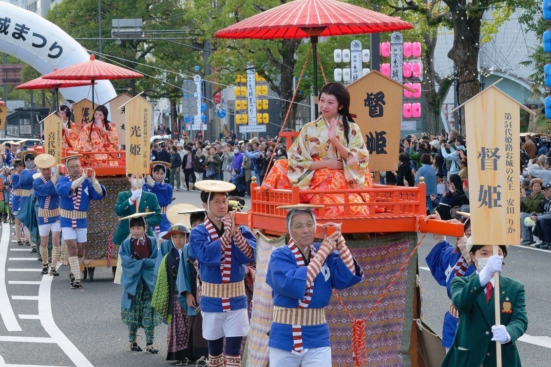 2日目の5月17日(土曜日)午後3時頃(予定)より大手前通りにて、現・姫路お城のアンバサダーが姫路ゆかりの姫君に扮し「千姫輿入れ行列」を繰り広げます。その行列に参加いただける子どもたちを大募集します。
