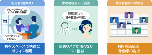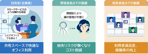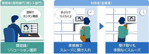 顔認証で鍵管理が不要になるとともに、利用者特定による荷物置忘れなどへの対応が容易になり、管理業務が効率化