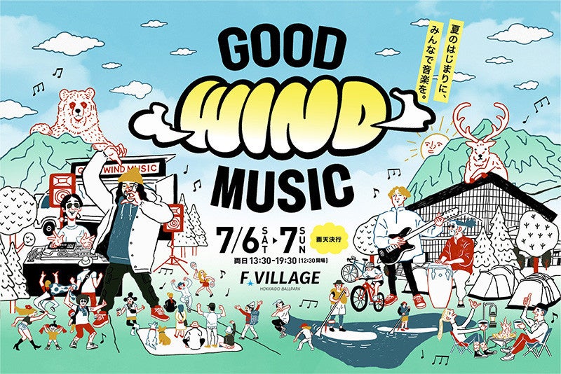 北海道ボールパークFビレッジでは、7月6日(土)・7日(日)にFビレッジで初めて、有料での野外音楽ライブイベント《GOOD WIND MUSIC》を開催いたします。