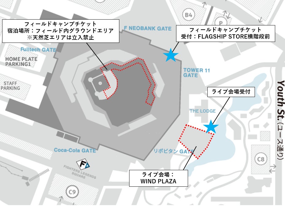 ・天然芝への入場不可 ・チケットには駐車券、食事は含まれません ・テントの持ち込み不可。アウトドアチェアの持ち込み可 ・火気厳禁。バーベキューコンロ等の持ち込み不可 ・フィールド内は水以外の飲食不可 ・tower eleven onsen & saunaの入浴時間は指定させていただきます。 |
