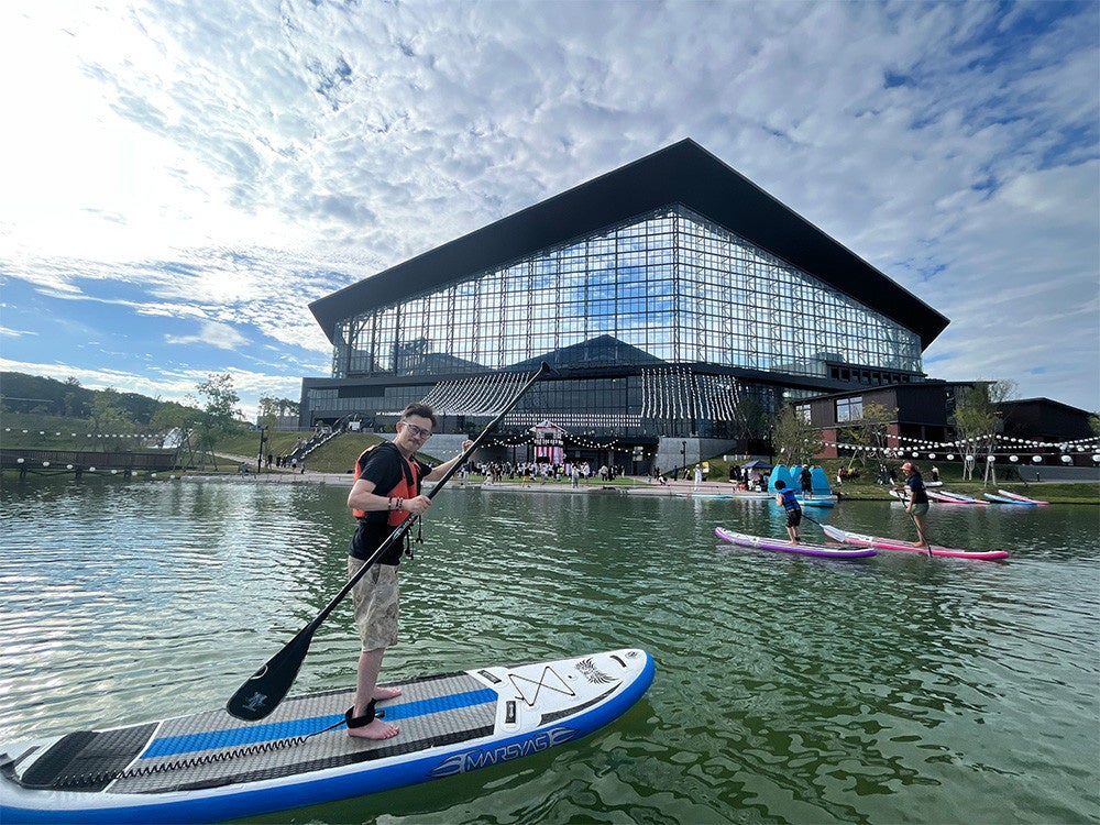 昨年好評だったSUP体験を今年も開催。初めての方でもインストラクターが教えてくれるので安心です。池の上でゆったり初夏の雰囲気を楽しみませんか。