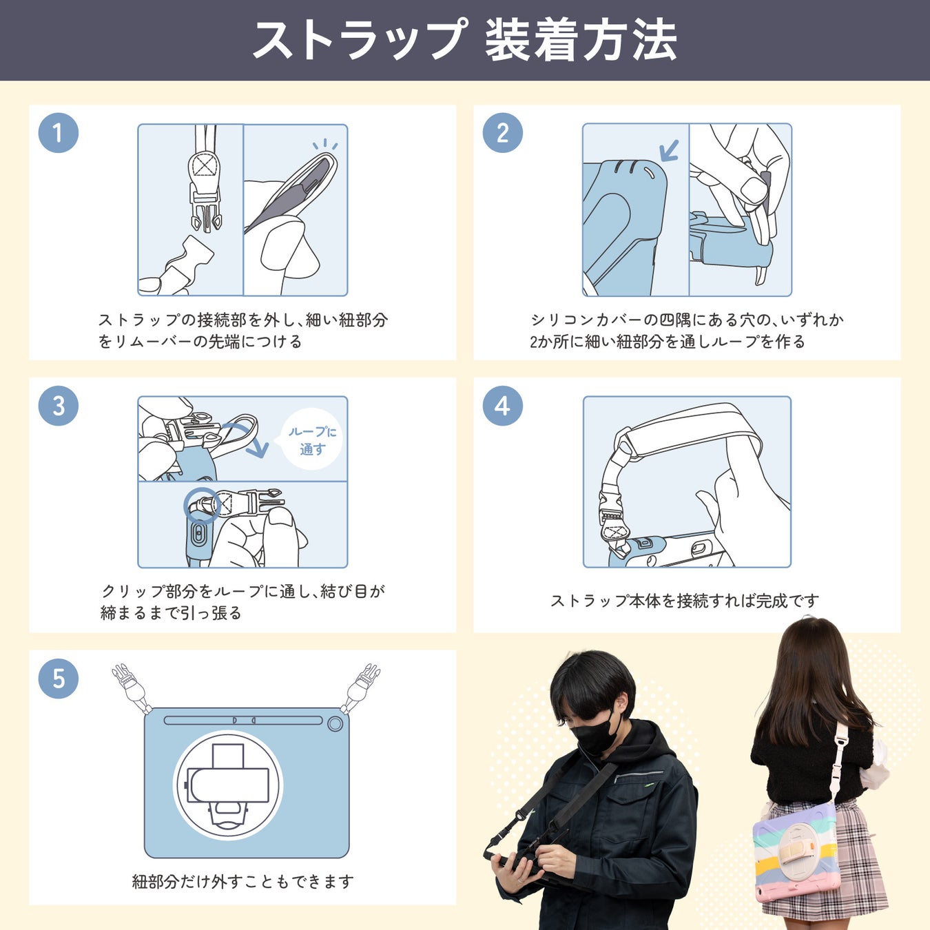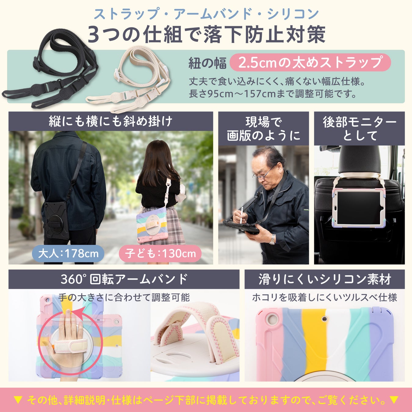 アイパッド10.2インチ 第9世代 第8世代 第7世代の3モデルに対応。斜め掛けできて持ち運びに便利なストラップ付き、かわいい・クールなデザインで学校、介護や医療の現場、建設現場など様々なシーンに