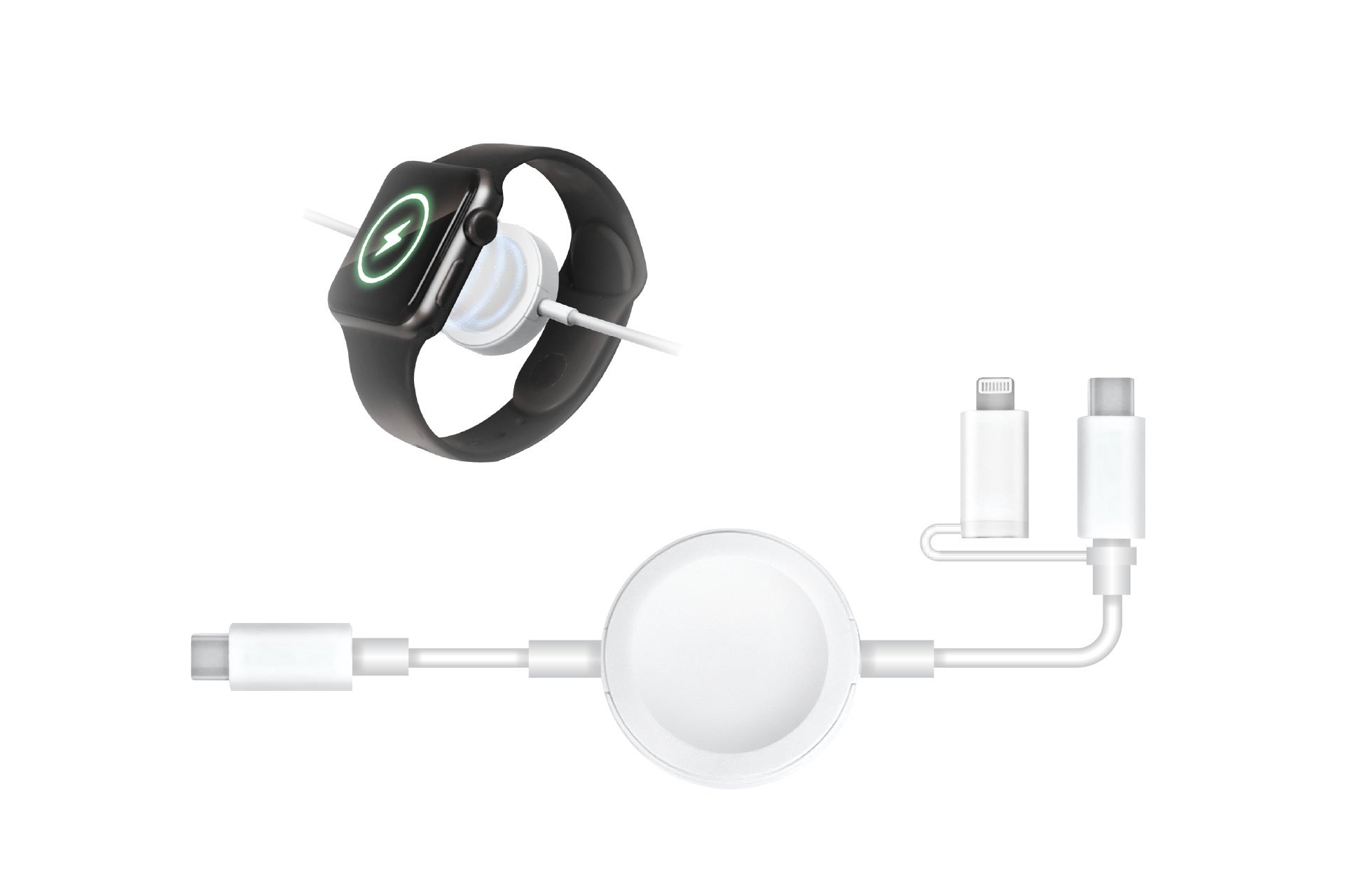 特徴:Apple Watchとスマートフォンを同時に充電することができ、かさばるケーブル問題を解決してくれます。デバイス機器が多いと、充電するスペースがごちゃごちゃになっていませんか?そんな方にオススメなのがこの3WAYマルチケーブル。同時に機器を接続し充電・給電が可能です。Type-Cとios専用端子は抜き差しするだけで変換可能!