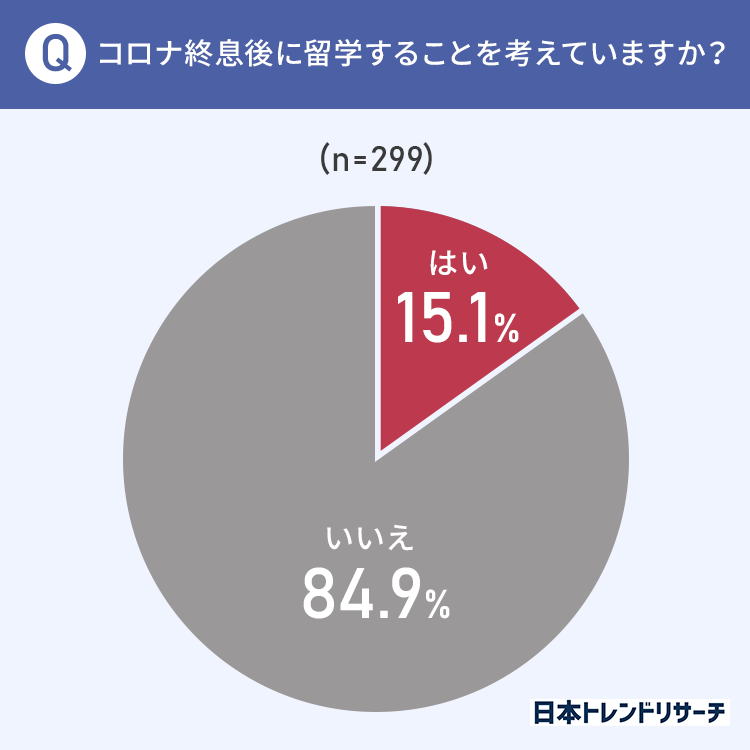 また、コロナ終息後に留学を考えている方は15.1%という結果になりました。