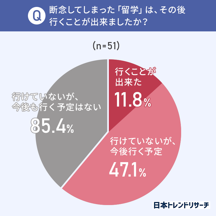 質問3:断念してしまった「留学」は、その後行くことが出来ましたか?