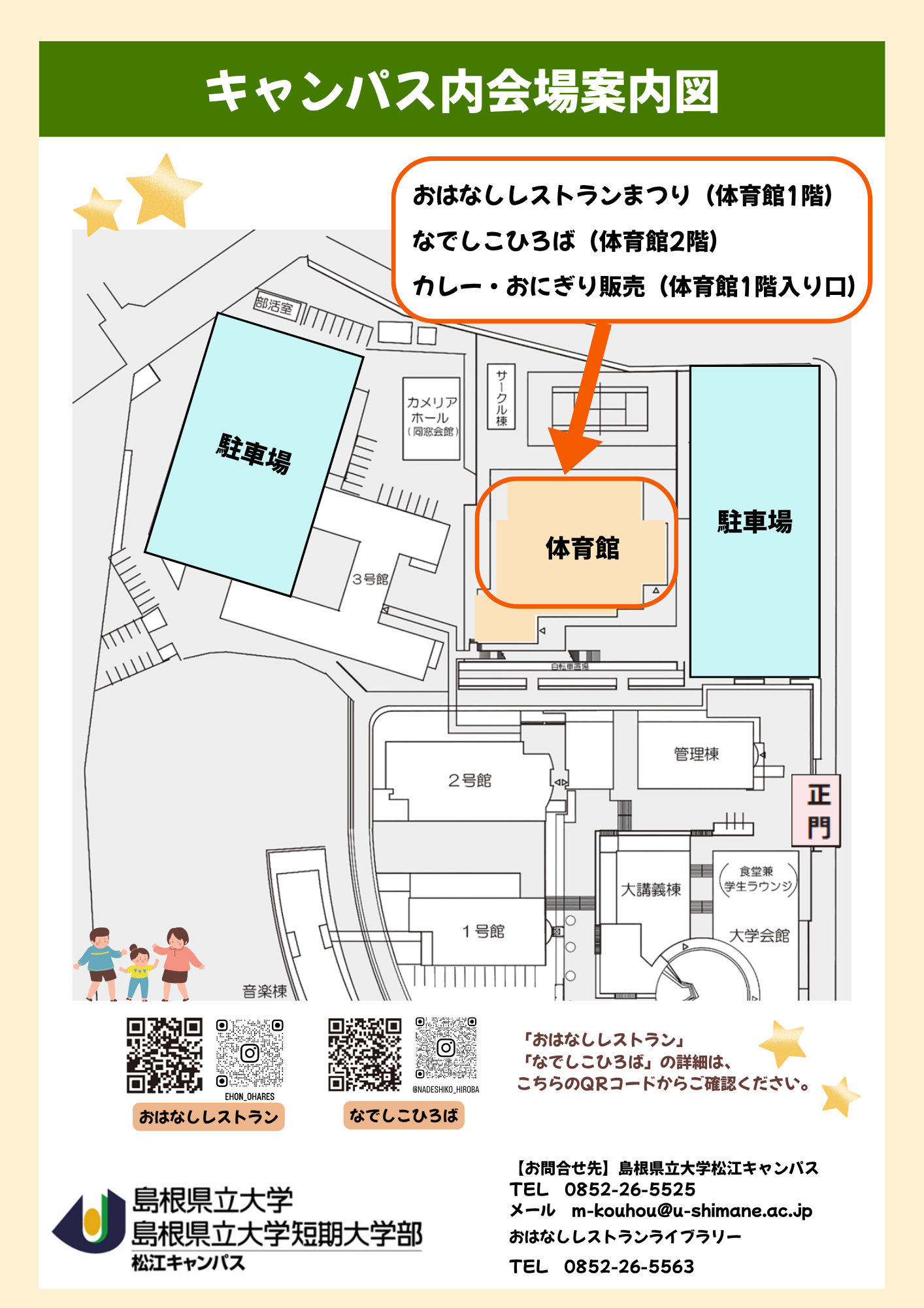 島根県立大学松江キャンパスでは、昨年に引き続き「おはなしレストランライブラリー&なでしこひろば わくわくコラボまつり」を12月6日(土)に開催します。