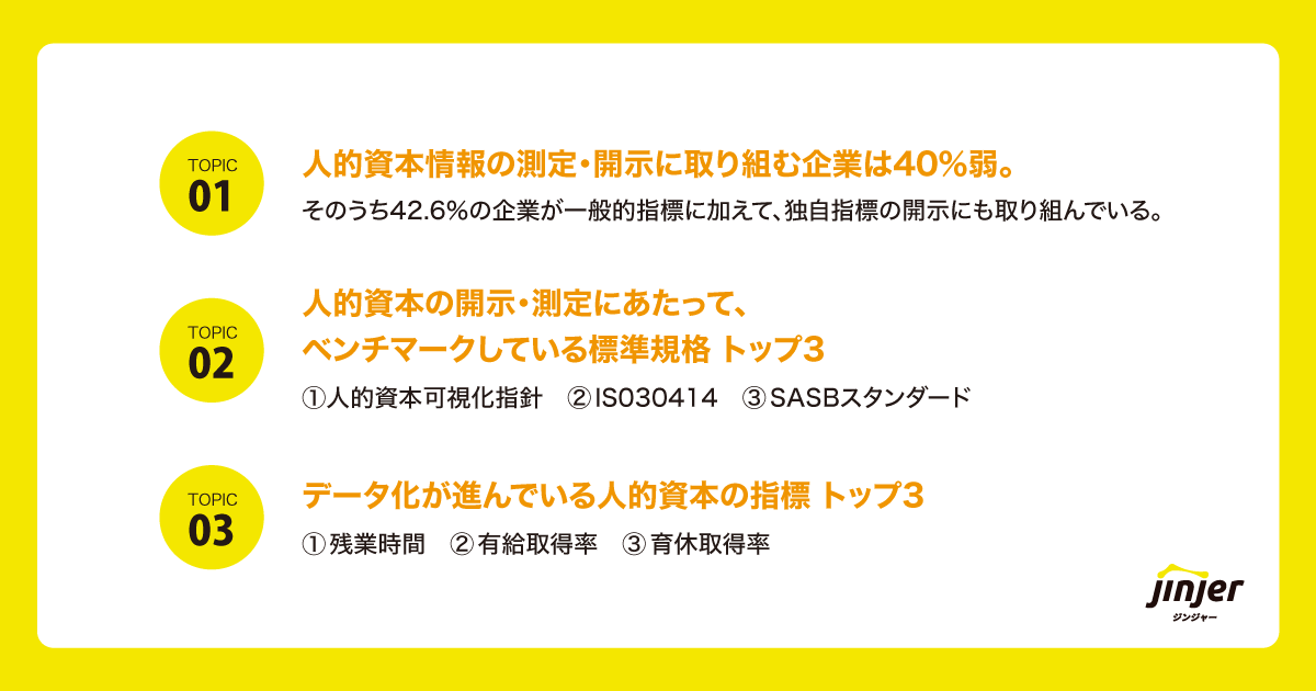 人的資本情報の測定・開示に取り組む企業は36.9%。最もデータ化が進む指標は、「勤怠」や「人」にまつわる情報。