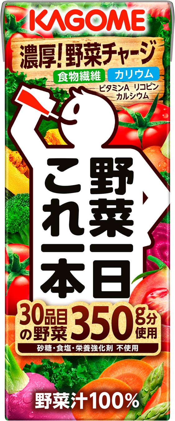 「これ1本」に彩り豊かな30品目の野菜350g分を使用(※1)。砂糖・食塩・栄養強化剤を使用せずに野菜本来のおいしさと栄養(※2)を提供する野菜汁100%ジュースです。トマトの濃厚な味わいを楽しみながら、野菜と栄養(※2)を手軽に補うことができます。 ※1:野菜飲料は原料野菜の全成分を含むものではありませんが、不足しがちな野菜を補うためにお役立てください。 ※2:食物繊維、カリウム、カルシウム、ビタミンA、リコピン