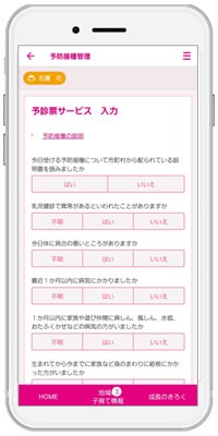 今回、「小児予防接種サービス」も導入し、保護者がより便利に手続きができる仕組みづくりと子育て支援サービスのさらなる充実を目指します。
