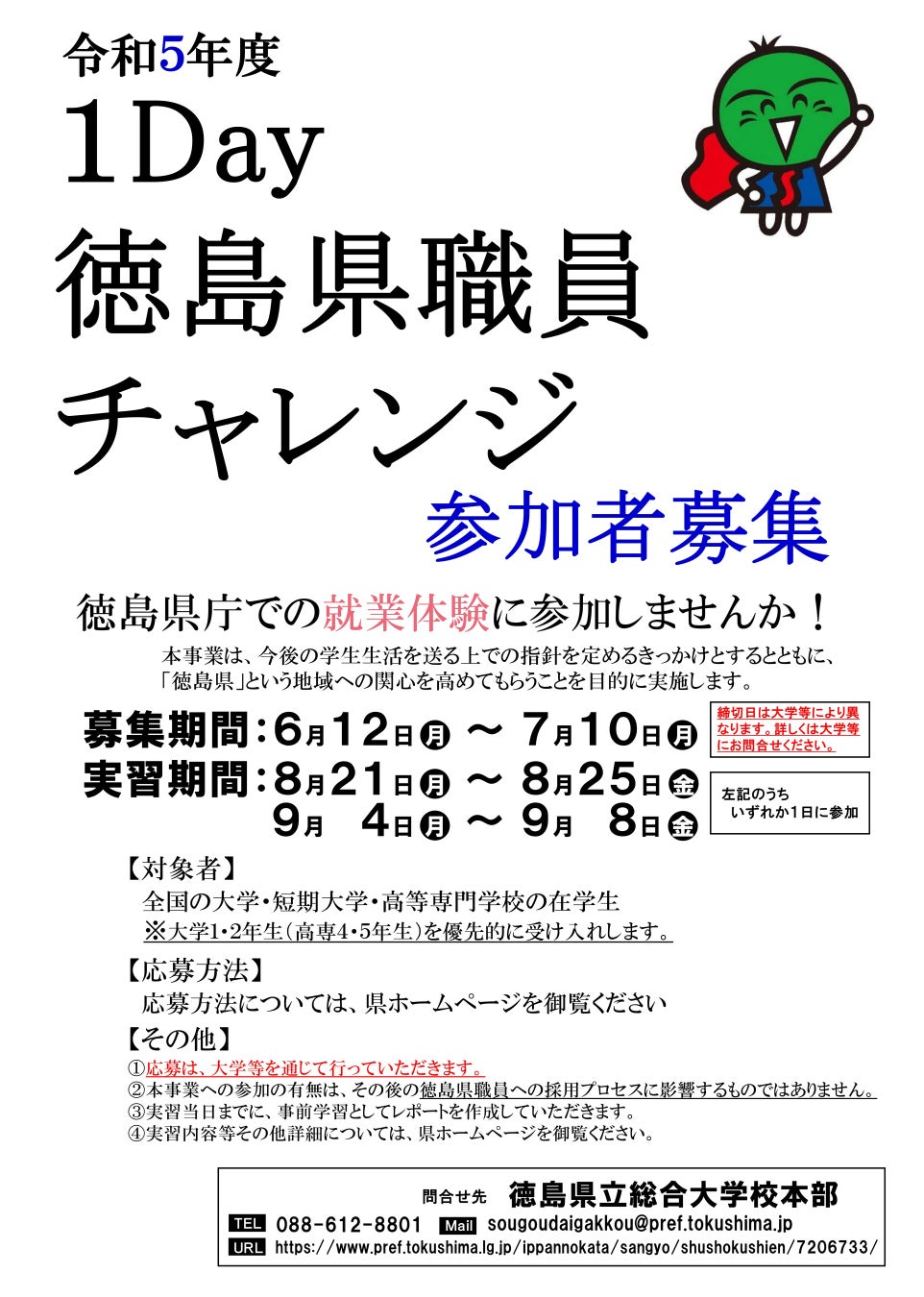 『令和5年度1Day徳島県職員チャレンジ』参加者募集!