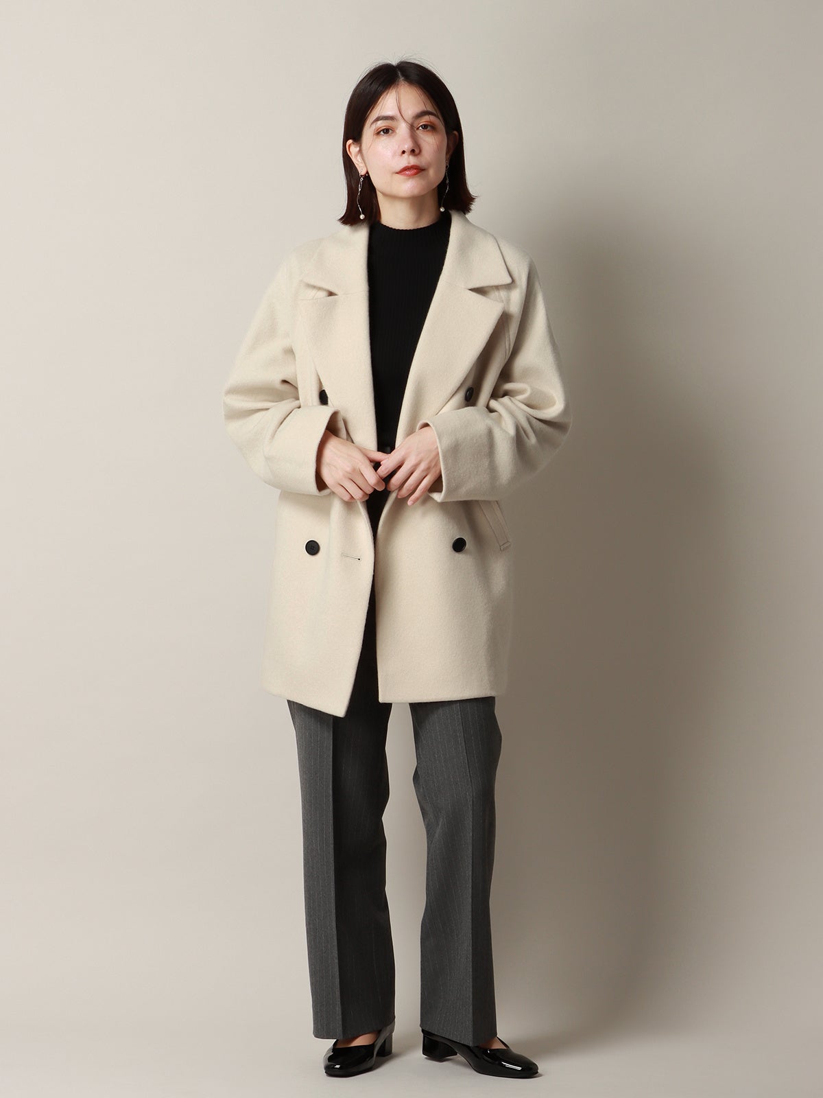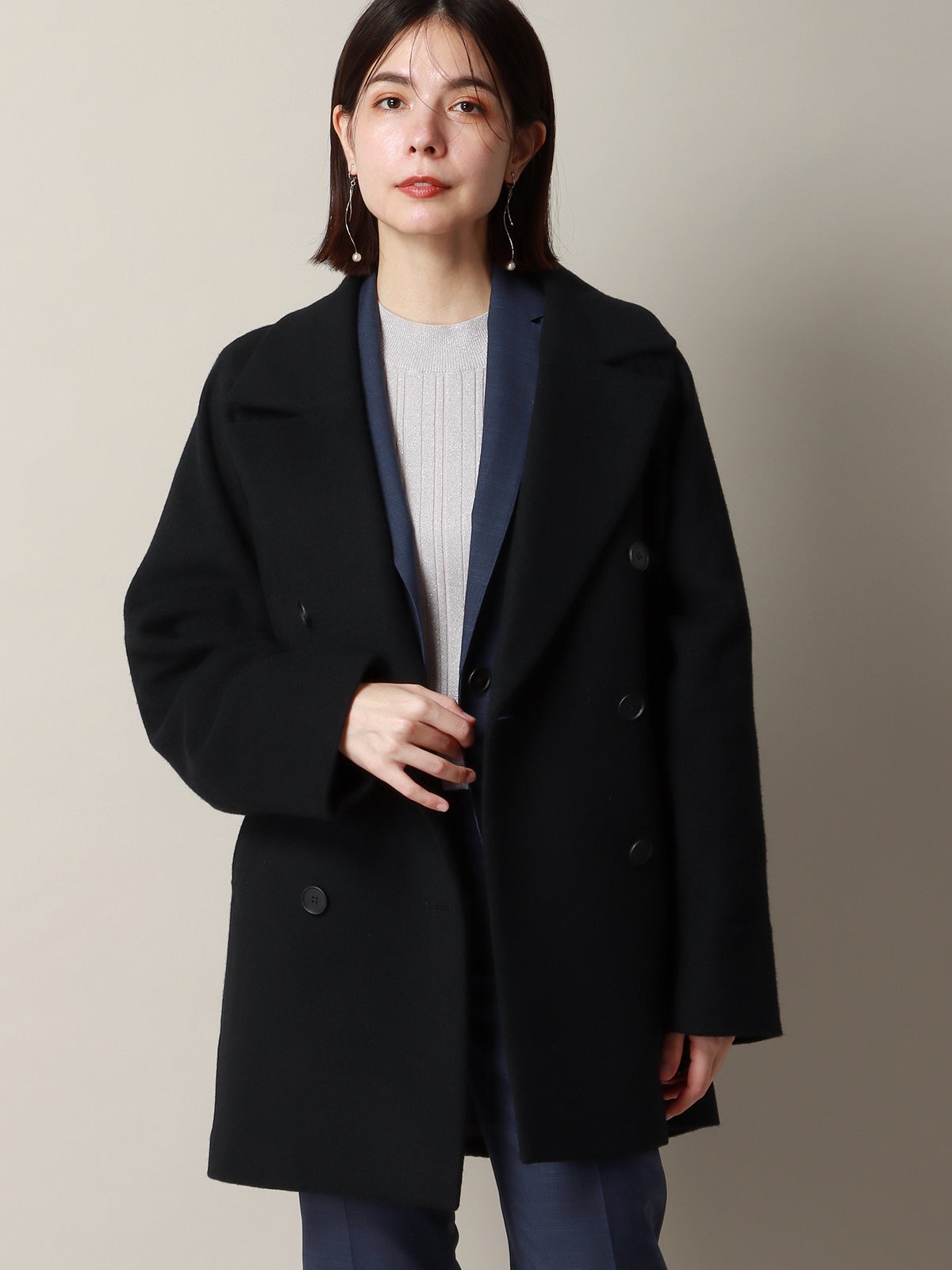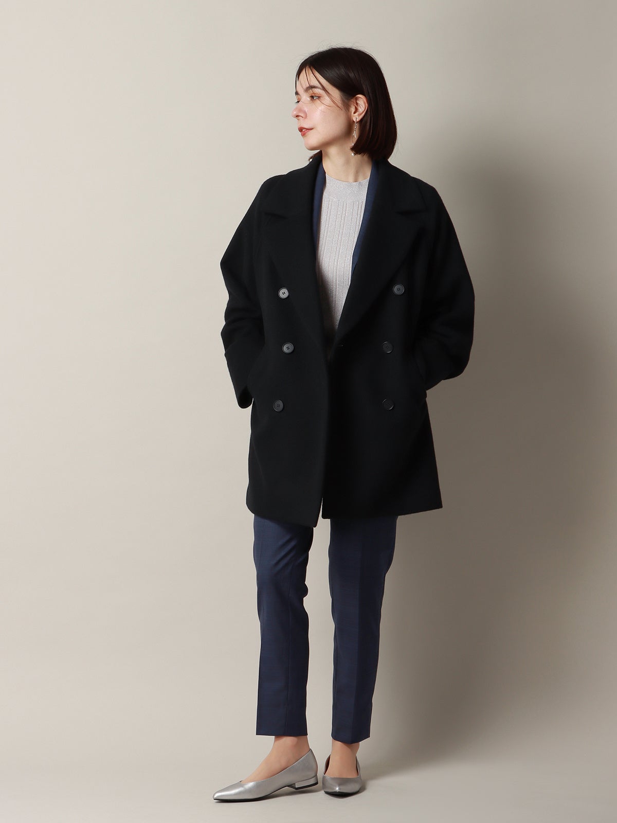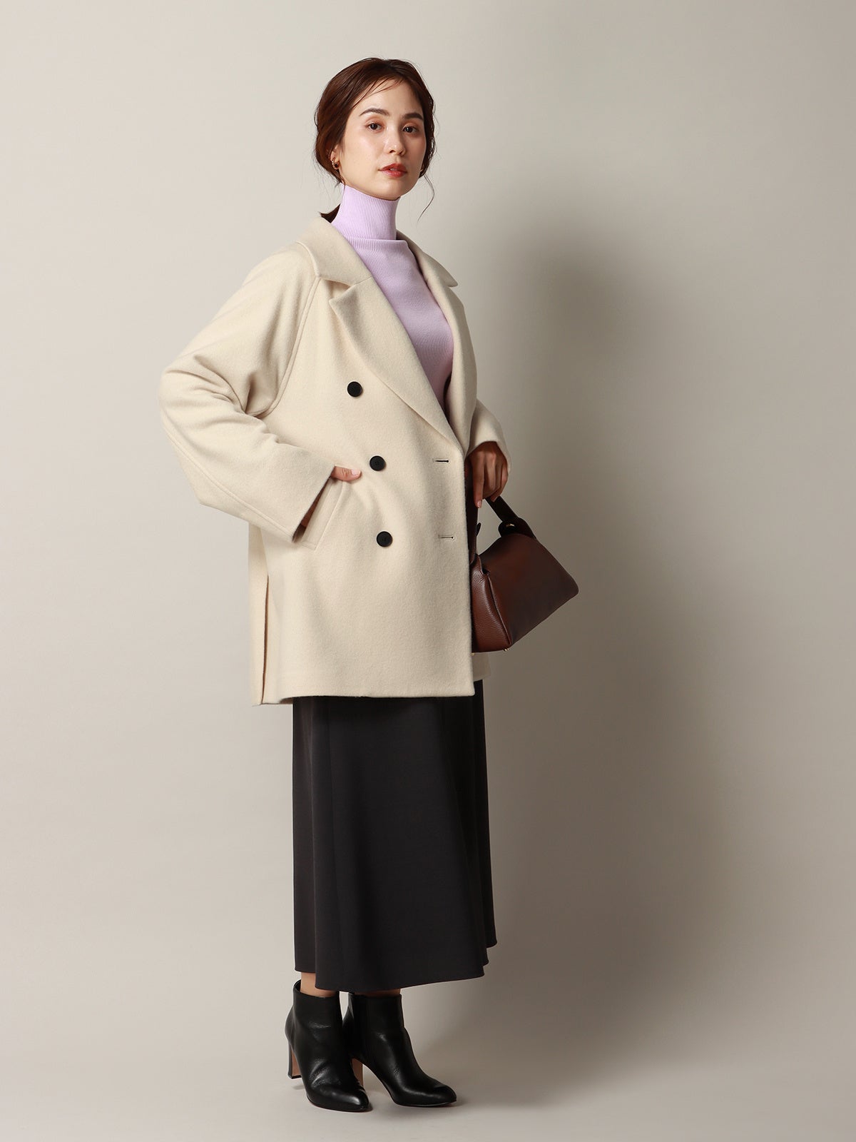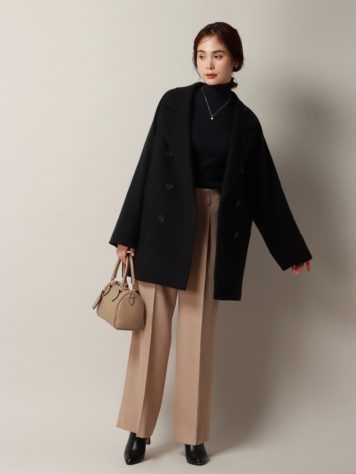 ウールコートは他のアウターに比べ重いため、サステナブルなウール素材の中でも、保温性と軽さを兼ね備えた「レスキュール(R)」を採用しました。デザインについては、汎用性を求める声の高まりから、お仕事の日のかっちりスタイルにもお休みの日のカジュアルスタイルにもマッチするデザインを意識し企画しています。そして、長めジャケットを着用した際でも裾が出ない、長すぎず短すぎずといった丈感は、スーツ屋だからこそのこだわりポイントです。