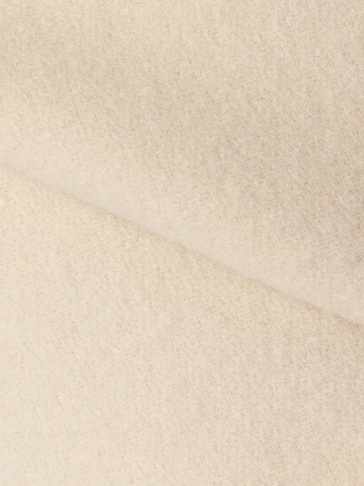 「レスキュール(R)」は、70年近くウール製品のリサイクルを行ってきた実績のある、尾州の工場で作られたサステナブルなウール糸を使用した素材です。ウール糸は、高品質な生地を使用したスーツを作る際に発生した落ちワタを原料にしています。材料となるワタは、一般的なスーツを作るワタよりも短く、コートを作るワタよりは少し長いため、肌触りが滑らかな仕上がりとなります。このウール糸と100%リサイクルナイロン糸を使用することで、保温性と軽さを兼ね備えたオールリサイクル素材に仕上がります。職人による生地の均一化や微調整など細かい工程を人の手で管理しているからこそできる、質の高い貴重なウール素材です。