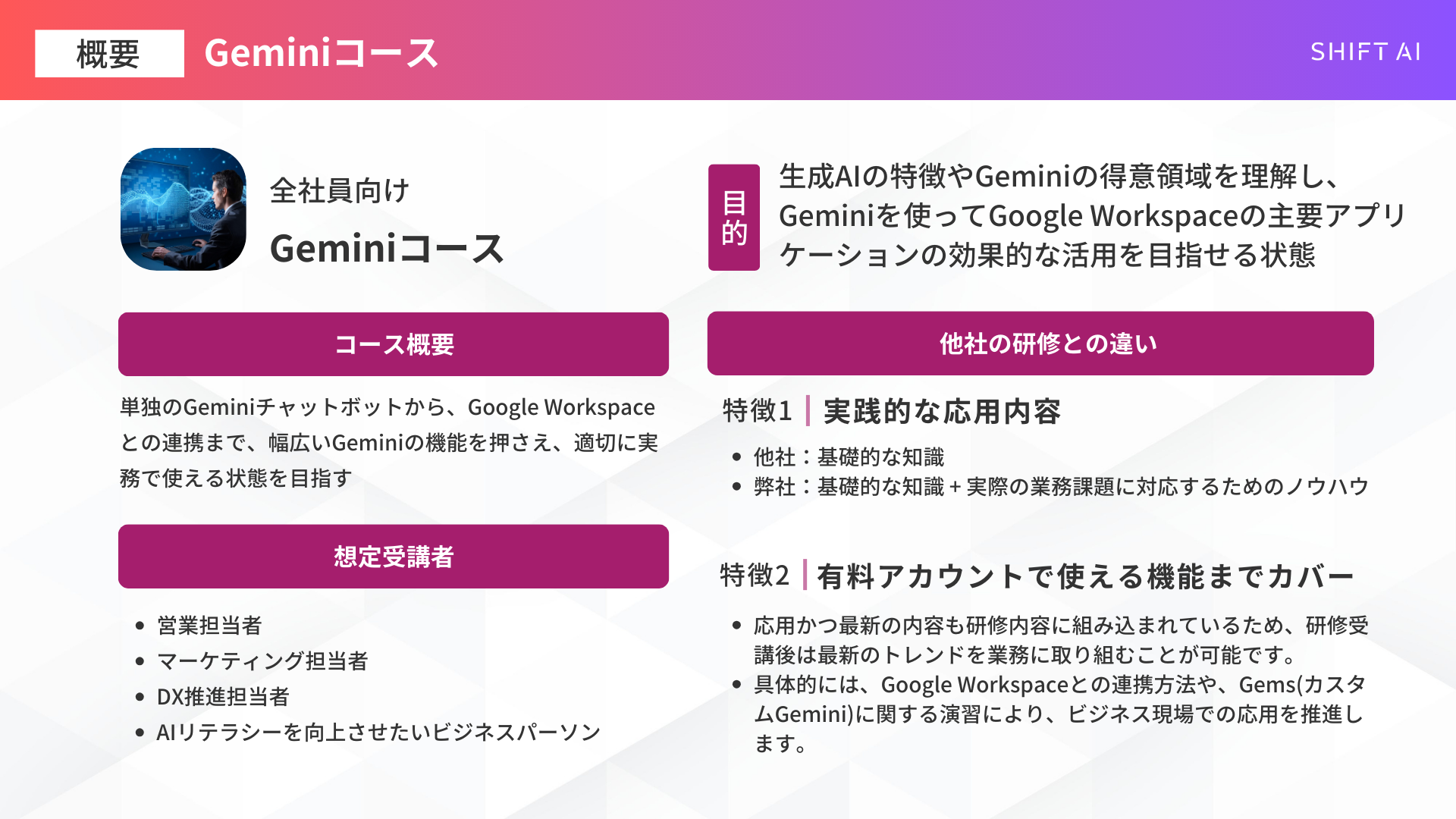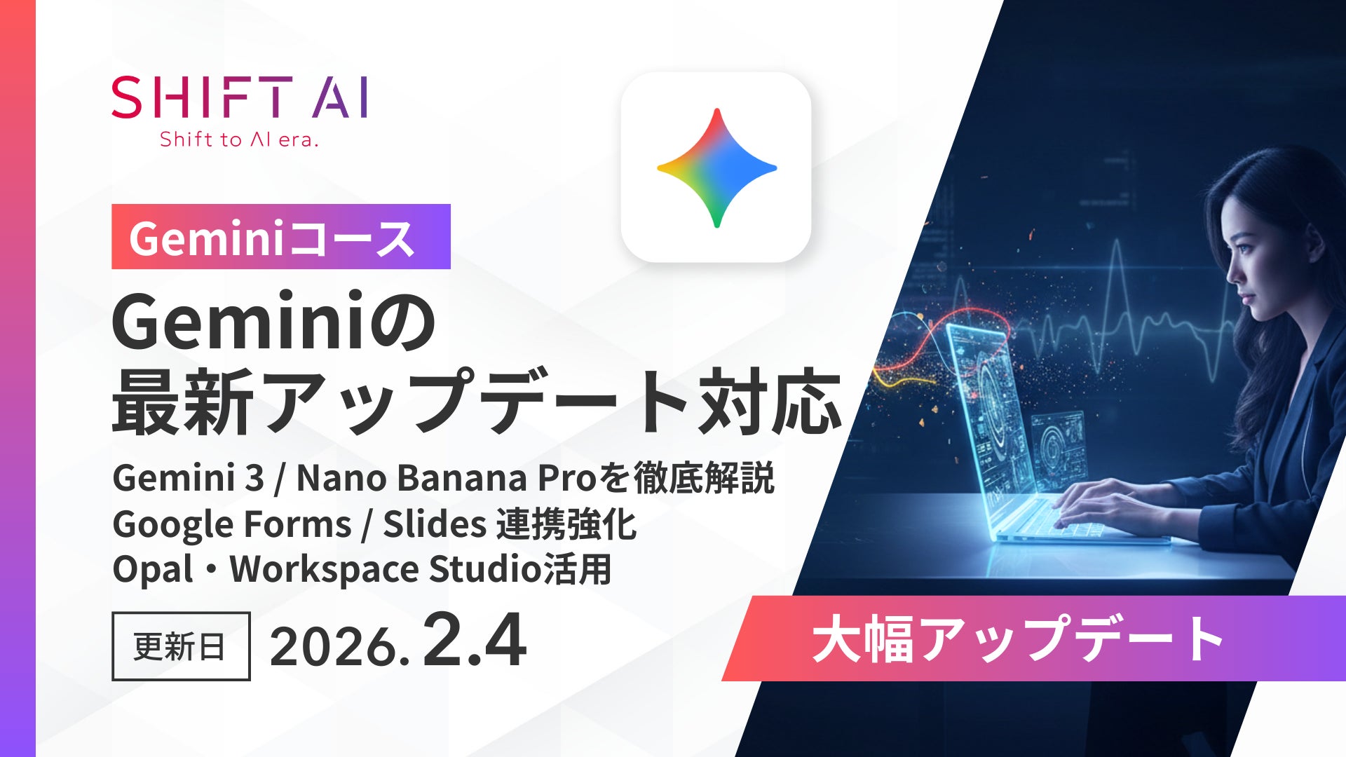 「知っている」から「使いこなす」へ。SHIFT AI for Biz、2月4日に実務直結のGeminiコースを大幅アップデート