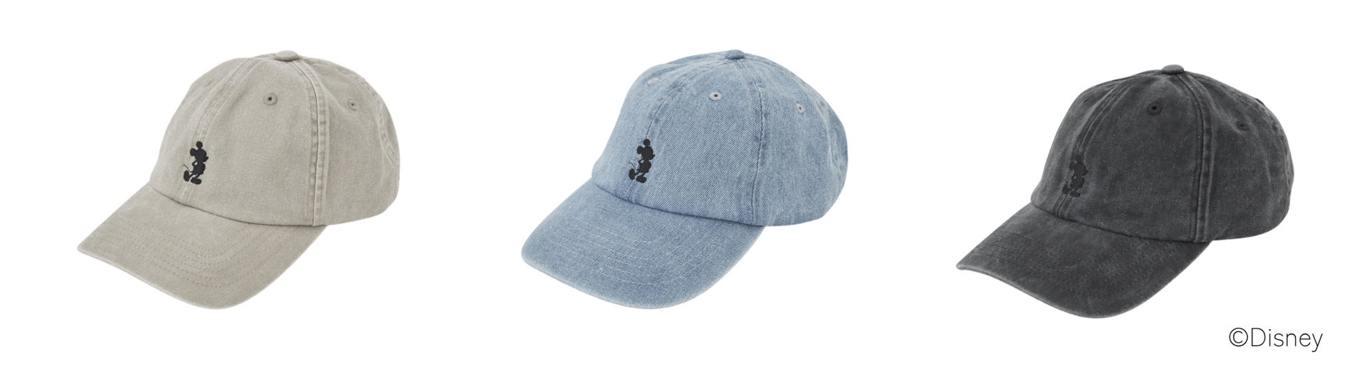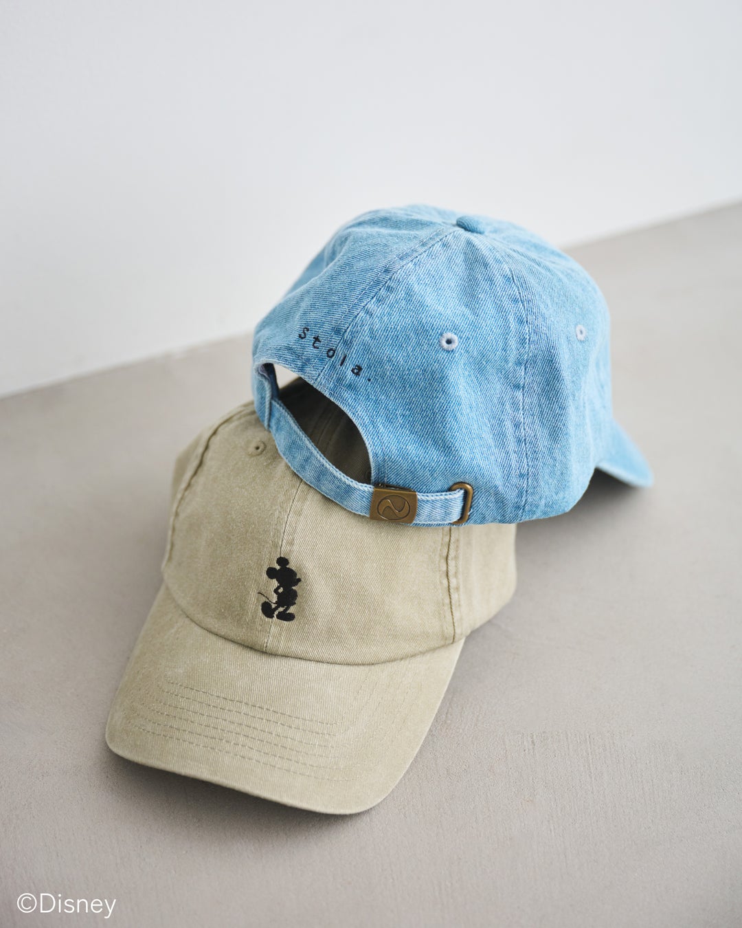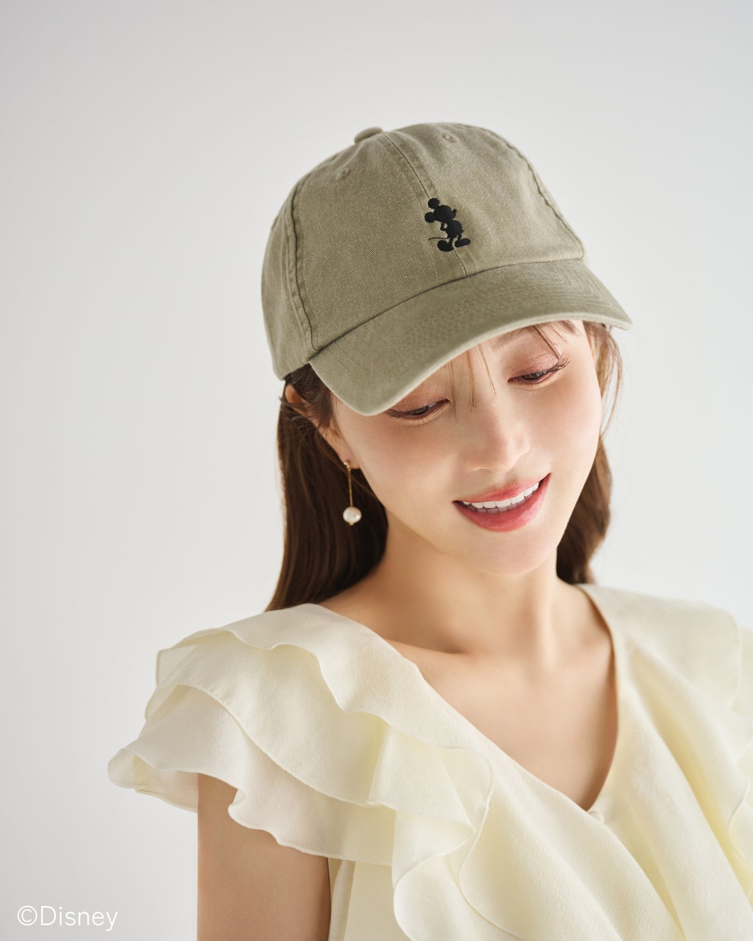 繊細な刺繍で描かれた「ミッキー」が、控えめながらも印象的なキャップ。