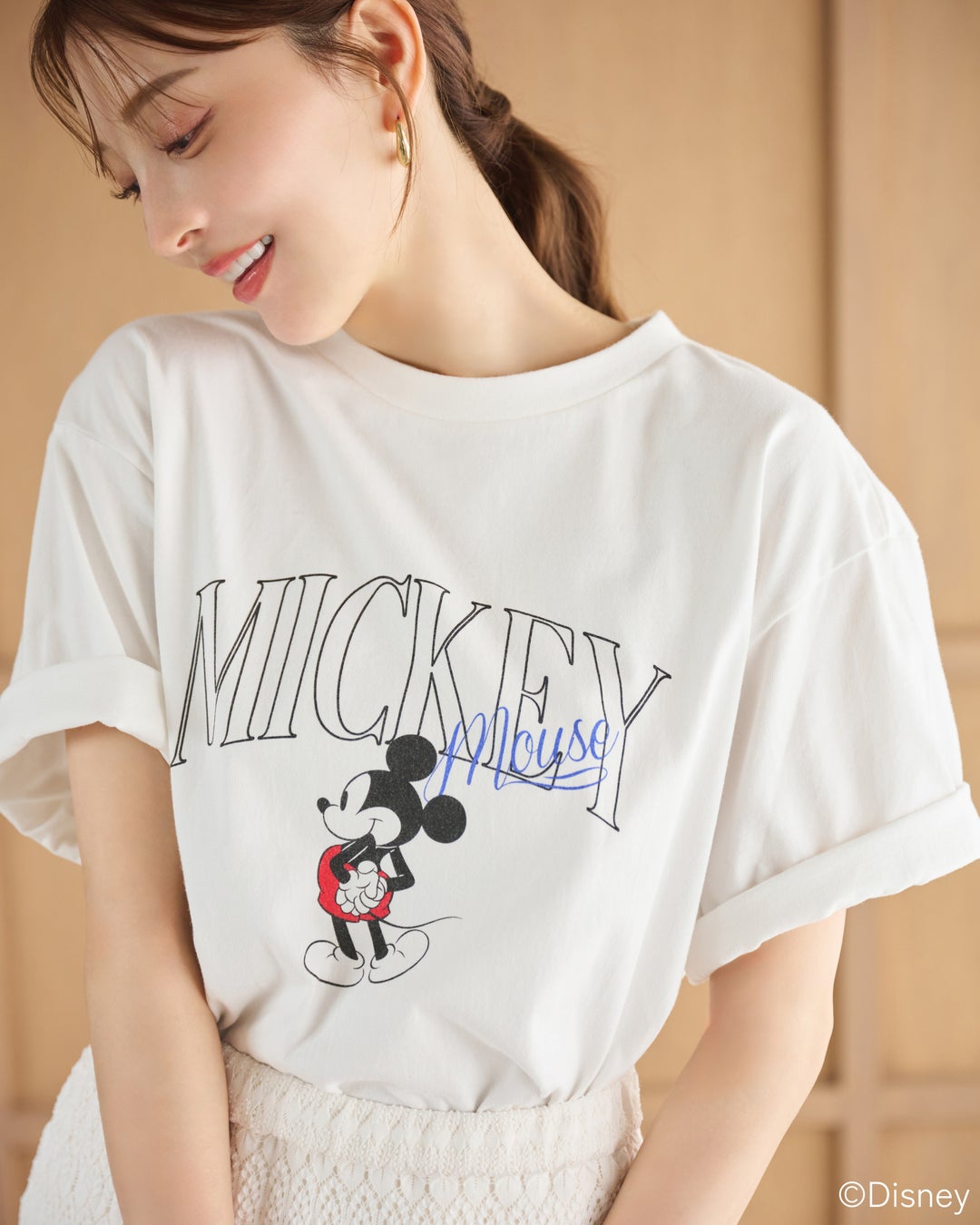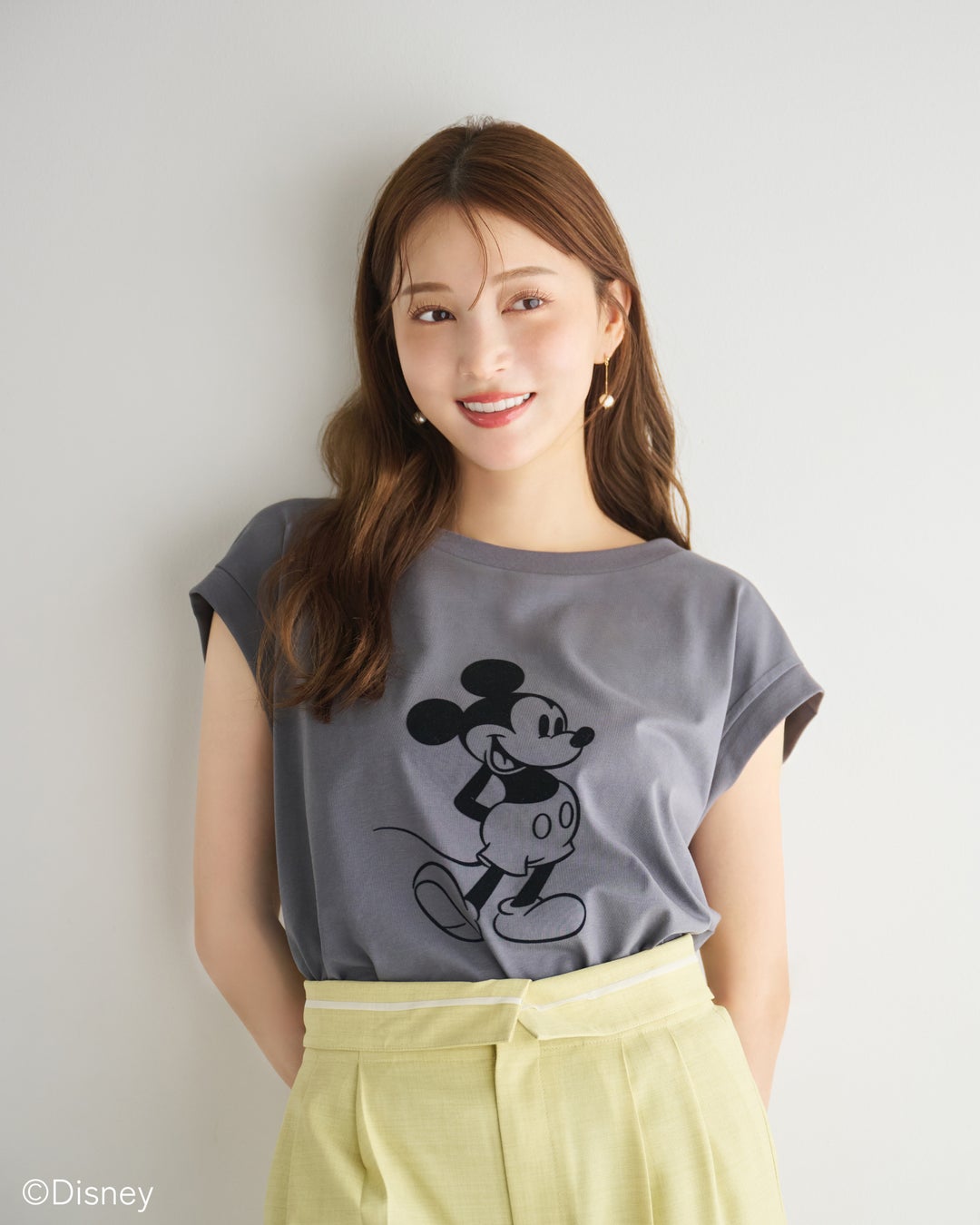 ベルベットのような質感が魅力のフロッキー加工で、「ミッキー」を表現したTシャツ。