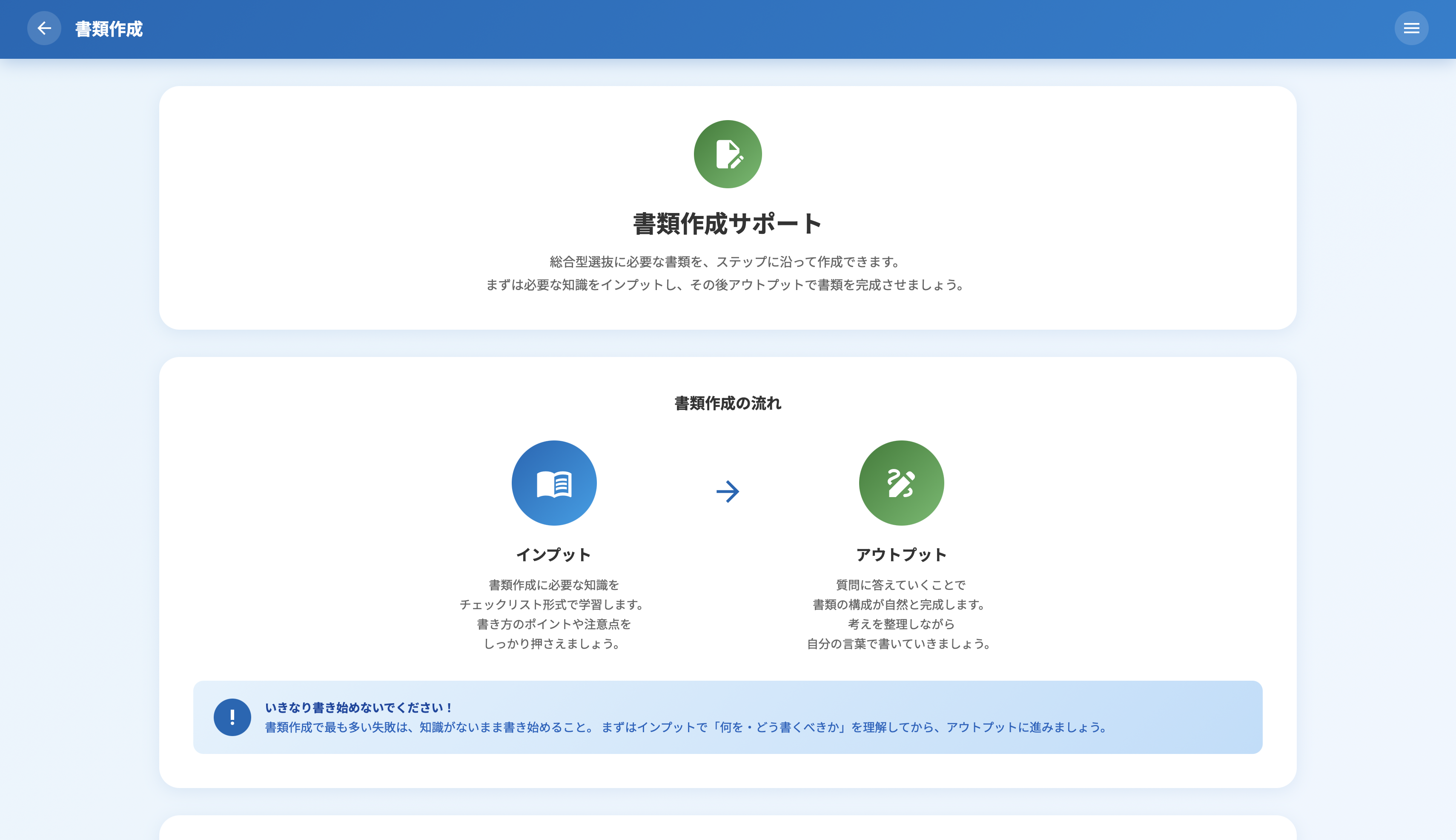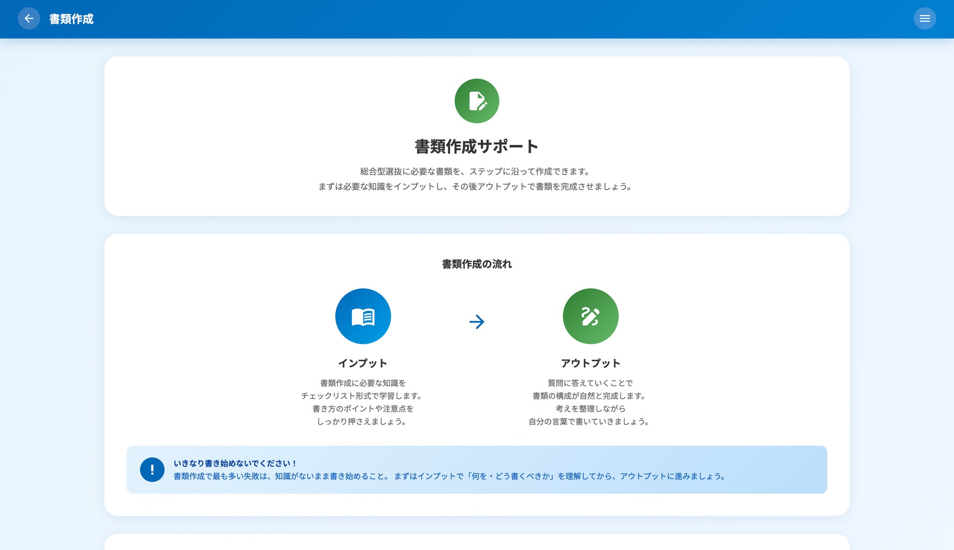 本機能は、総合型選抜における最重要書類である志望理由書を、