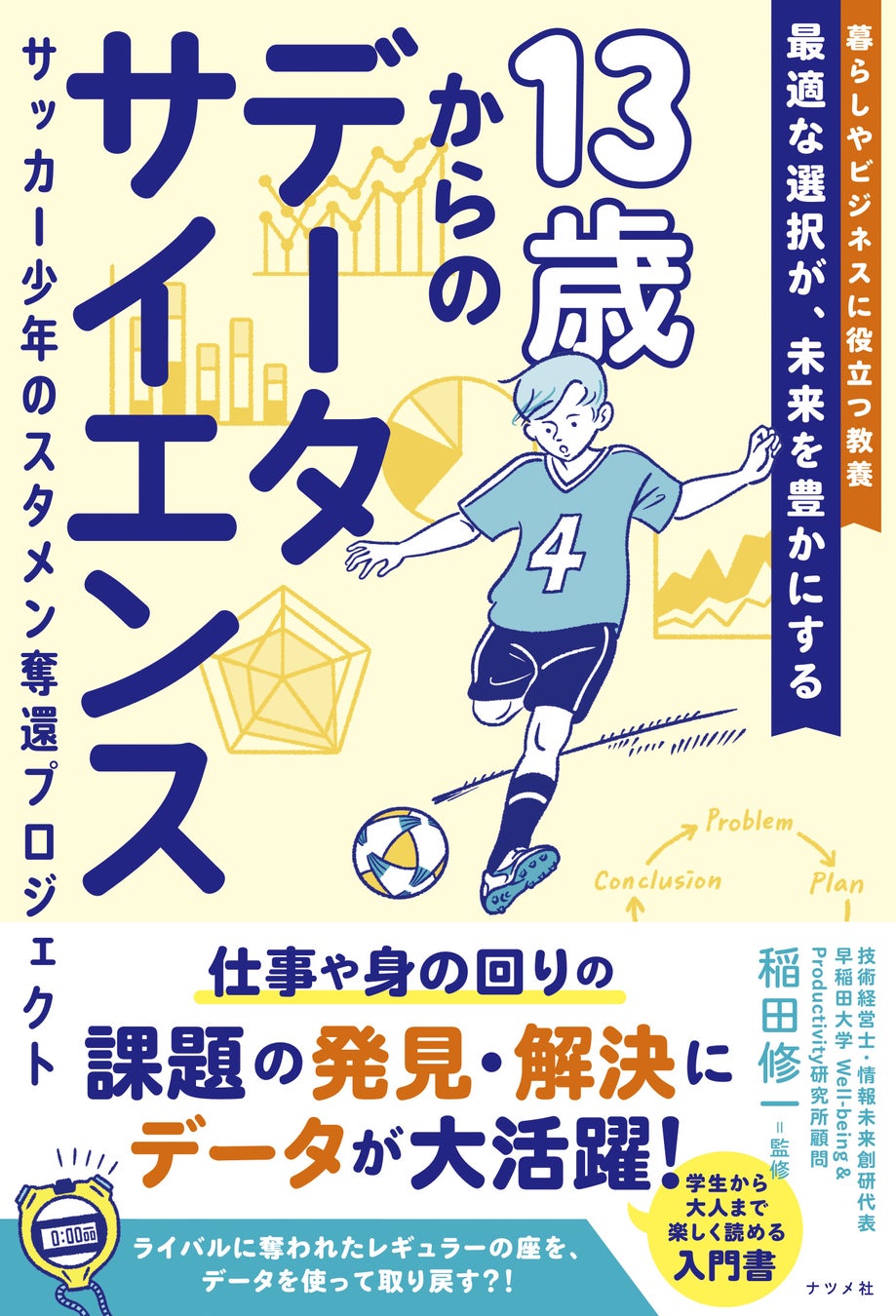 実用書や児童書、教養書を発行する出版社、株式会社ナツメ社(東京都千代田区、代表取締役:田村正隆)は『13歳からのデータサイエンス サッカー少年のスタメン奪還プロジェクト』(https://amzn.asia/d/09L7LI0a)を2月17日に発売します。部活のスタメン争いで悩む中学生の物語をとおして、データサイエンスをやさしく学べる入門書です。