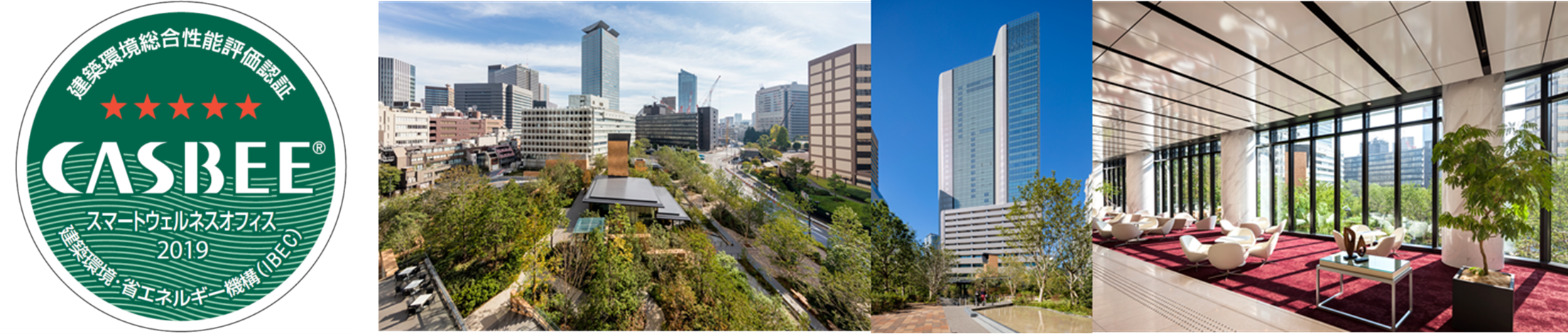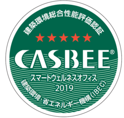 同施設は、一般財団法人建築環境・省エネルギー機構(IBEC)による「CASBEEウェルネスオフィス評価認証」の先行認証第一号案件として、最高評価のCASBEEウェルネスオフィス認証Sランクを取得しています。