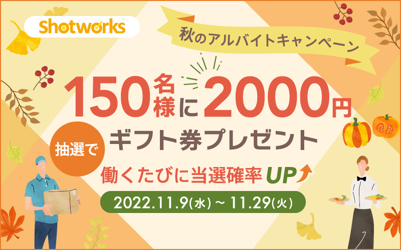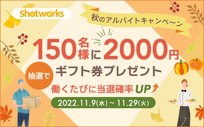 単発バイトマッチングサービス『ショットワークス』が秋のアルバイトキャンペーンを開催