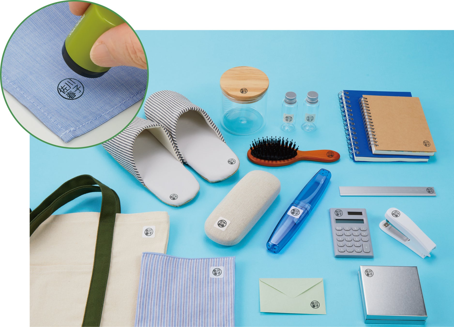 学用品、介護用品や衣類などに、スタンプでカンタン! 素早く名前付け 「どこでも持ち物スタンプ 氏名印タイプ」&「布に貼れるお名前シール」発売
