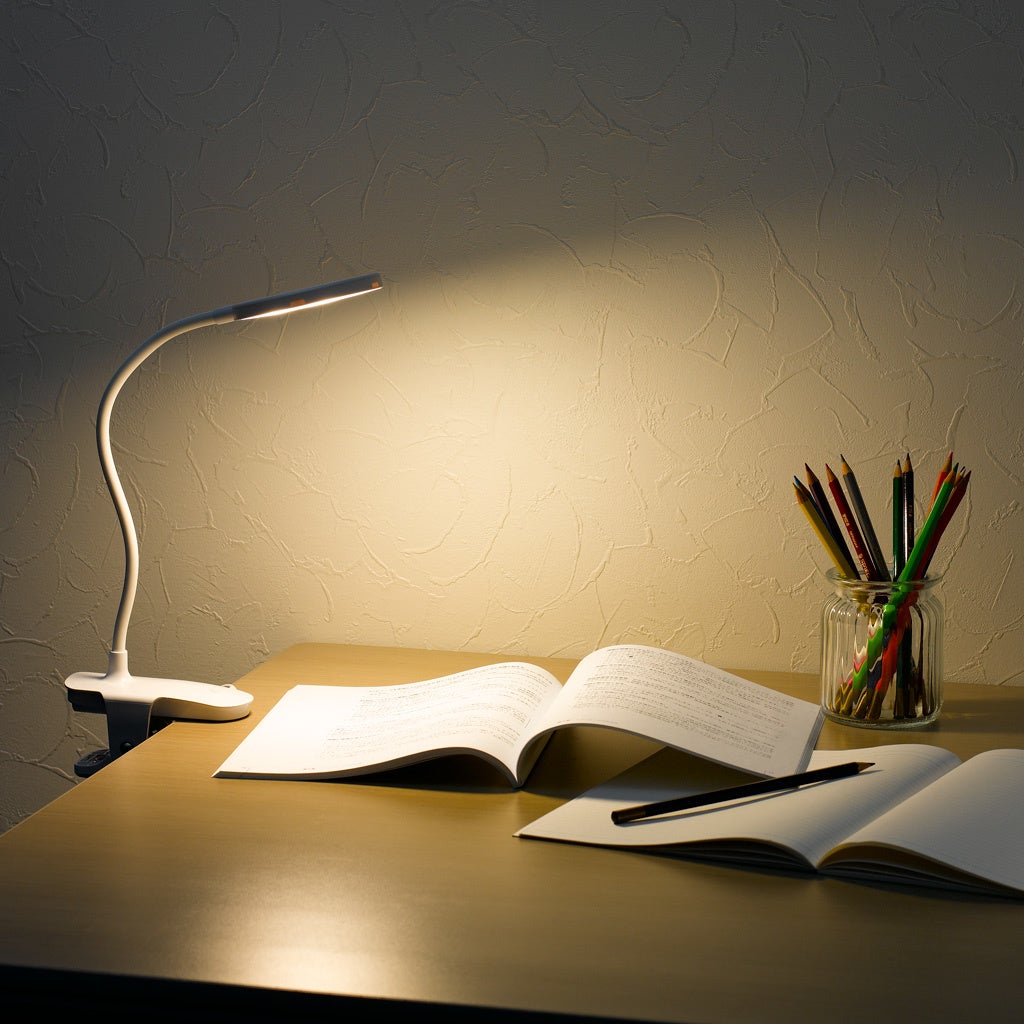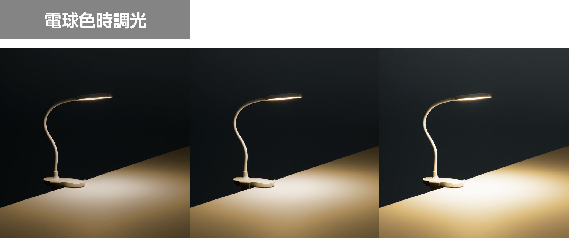 安定感のあるスタンドライト、机が広く使えるクリップライトどちらでも使用ができます。3段階の調色機能+3段階調光機能で様々なシーンで最適な明かりを届けます。
