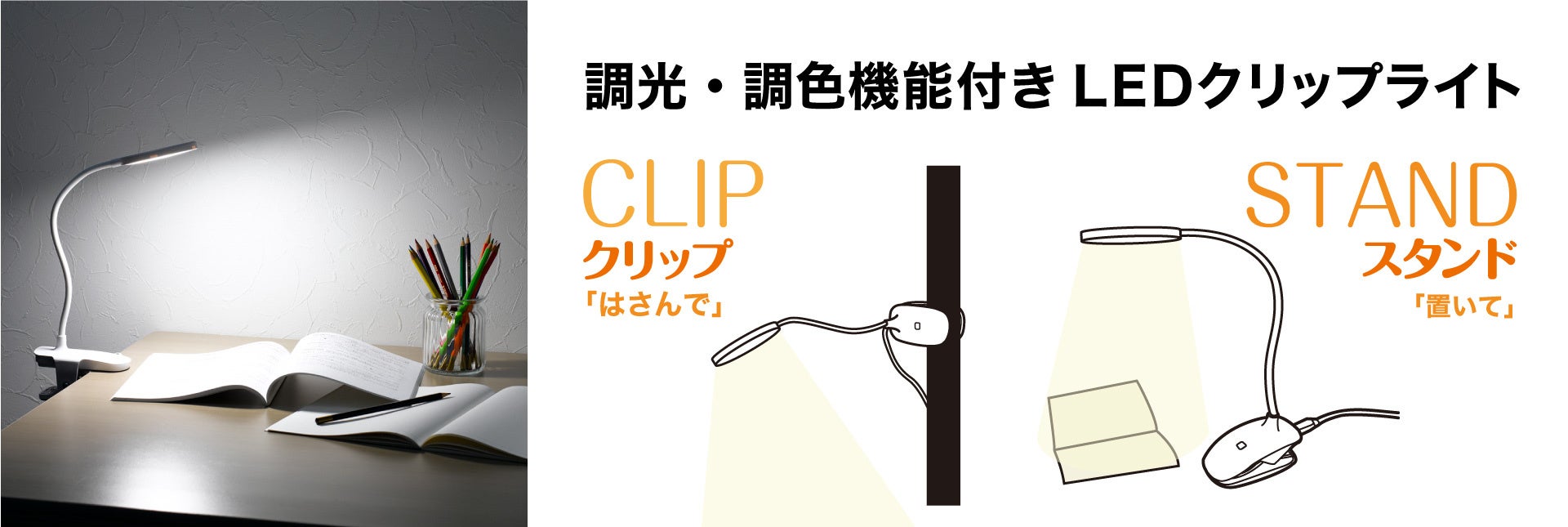 インテリア家電製品および、PCサプライ品の製造販売を手掛ける株式会社ヤザワコーポレーションは、調光調色機能付きLEDクリップライトを発売しました。