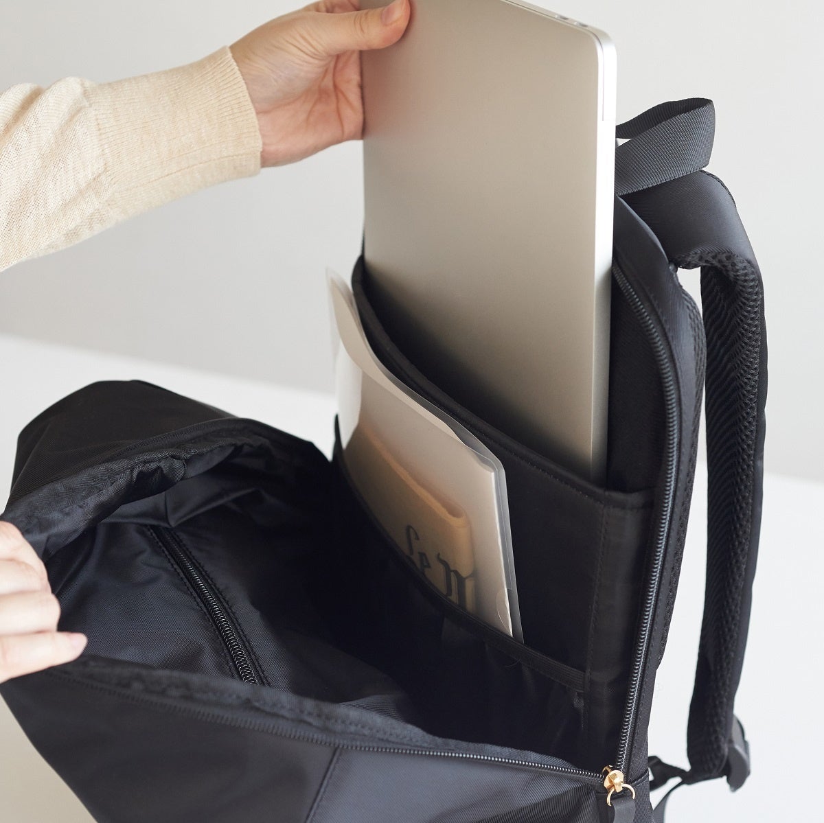 15インチのパソコンが入るしっかりとしたサイズ。持ち運びやすさとコンパクトさを兼ね備えました。