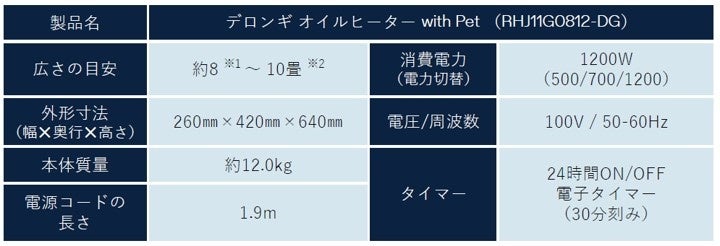 ■「デロンギ オイルヒーター with Pet(RHJ11G0812-DG)」概要