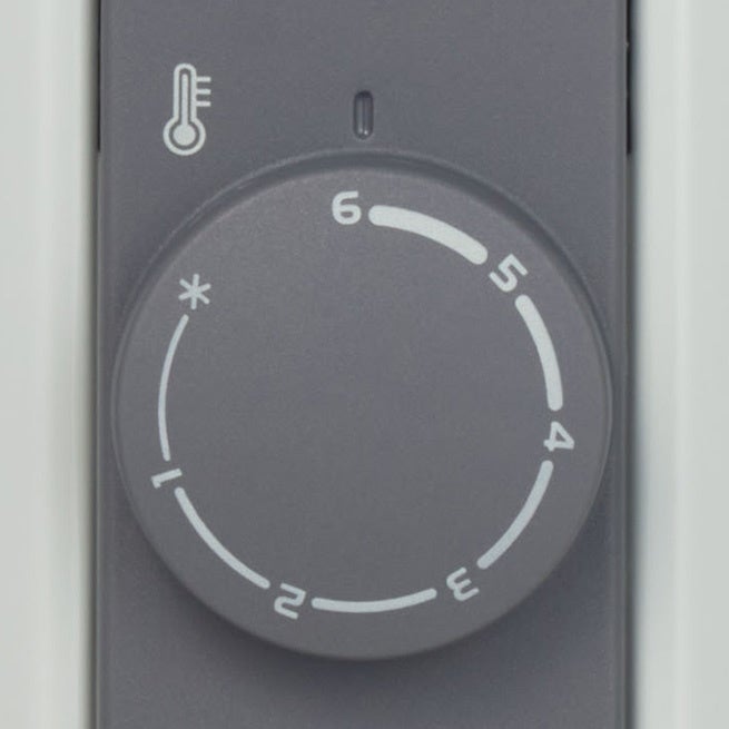 適温になったら温度設定ダイヤルを回して、電力ランプが消えるポイントまで戻します。室温が下がったら自動で電源オン、室温が上がったら自動で電源オフが繰り返され、室温を一定に保ちます。