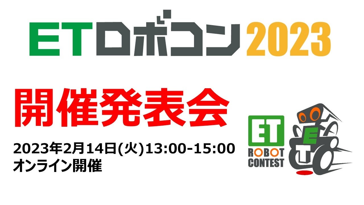2/14(火)13時からの「ETロボコン2023開催発表会」では、競技内容等の概要説明や活用事例も紹介しますので、参加・スポンサーをご検討の方はもちろん、人材育成にお困りの企業・学校のご担当者様もぜひご参加ください。(https://www.etrobo.jp/et2023presentation/)