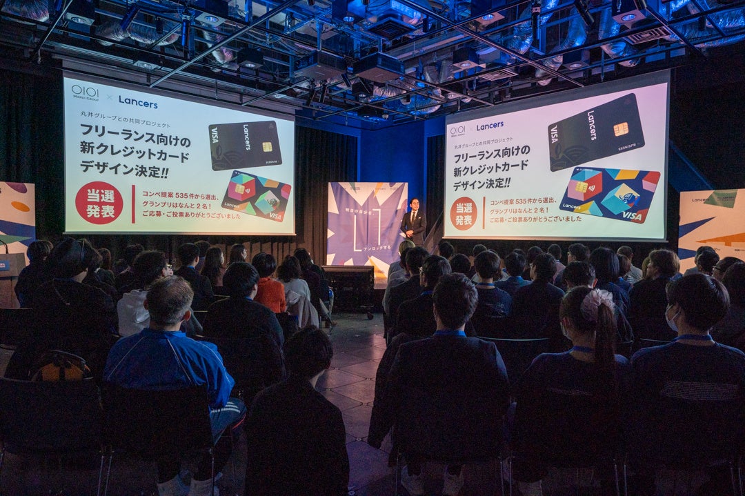「Lancer of the Year 2025」には丸井グループにもご参画いただき、当日参加したフリーランスの皆さまに直接カードの詳細を説明いたしました。また、「ランサーズカードVisa」を紹介するPR動画をフリーランスのクリエイターに制作いただき、イベント会場にて配信いたしました。
