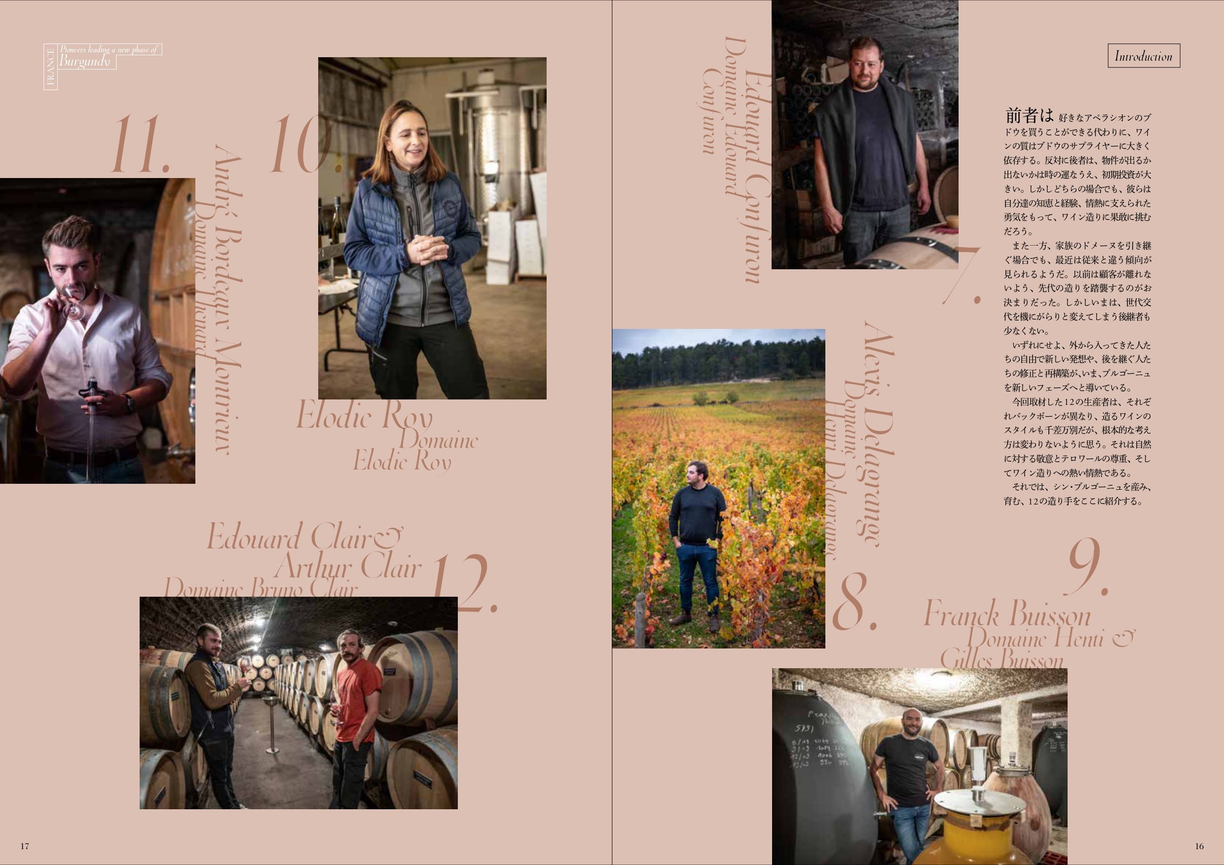 ・ブルゴーニュの新しい造り手:レ・オレ/ドメーヌ・ド・カシオペ/カミーユ・ティリエ/アントワーヌ・ルプティ・ド・ラ・ビーニュ/マキシム・クロテ/ニコラ・モラン 世代交代の造り手:ドメーヌ・エドワール・コンフュロン/ドメーヌ・アンリ・ドゥラグランジュ/ドメーヌ・アンリ・ジル・ビュイッソン/ドメーヌ・エロディ・ロワ/ドメーヌ・テナール/ドメーヌ・ブリュノ・クレール