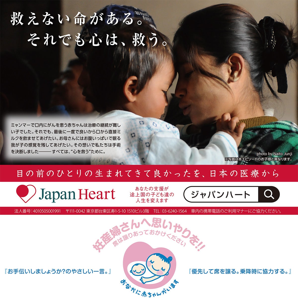 途上国の“子どもを救う”ジャパンハートとお腹の“赤ちゃんを守る”マタニティマークのタイアップ電車広告が掲出開始