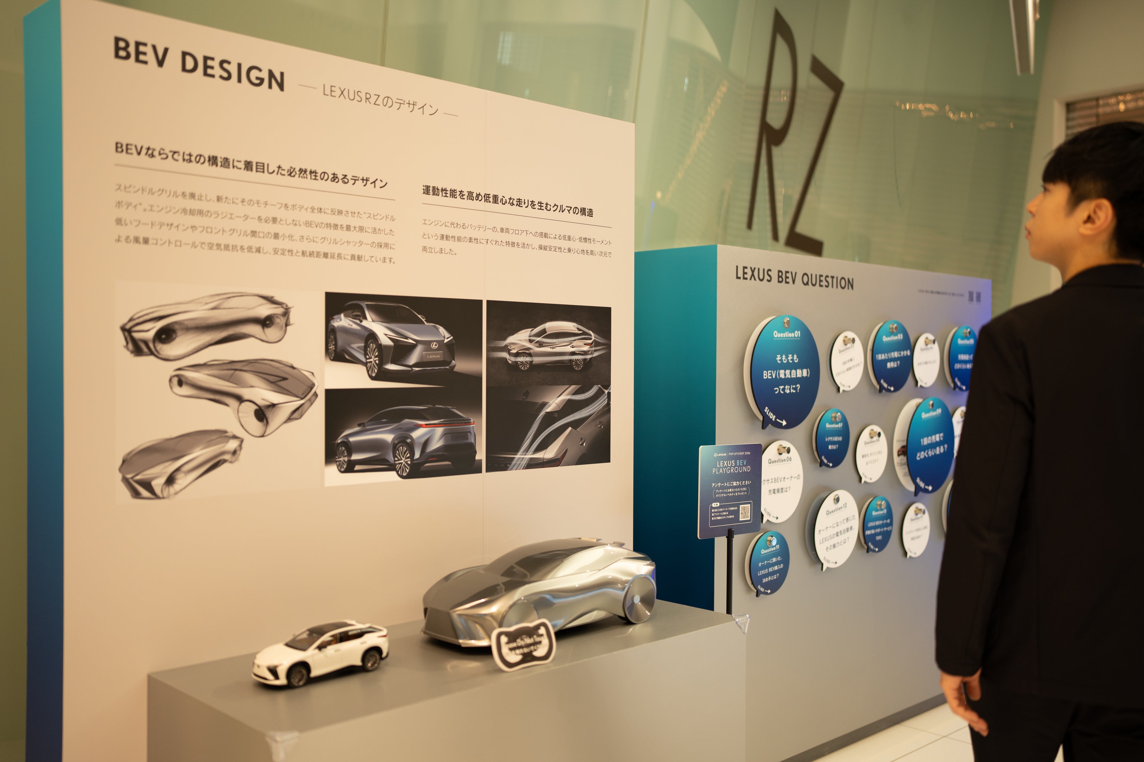 “眺める”だけではなく、“触れて納得できる”コンテンツ設計により、LEXUSがつくるBEVのこだわりや、運転の楽しさをより身近に体験できる機会を作り、どのような価値をお届けするか実感できる場になっています。