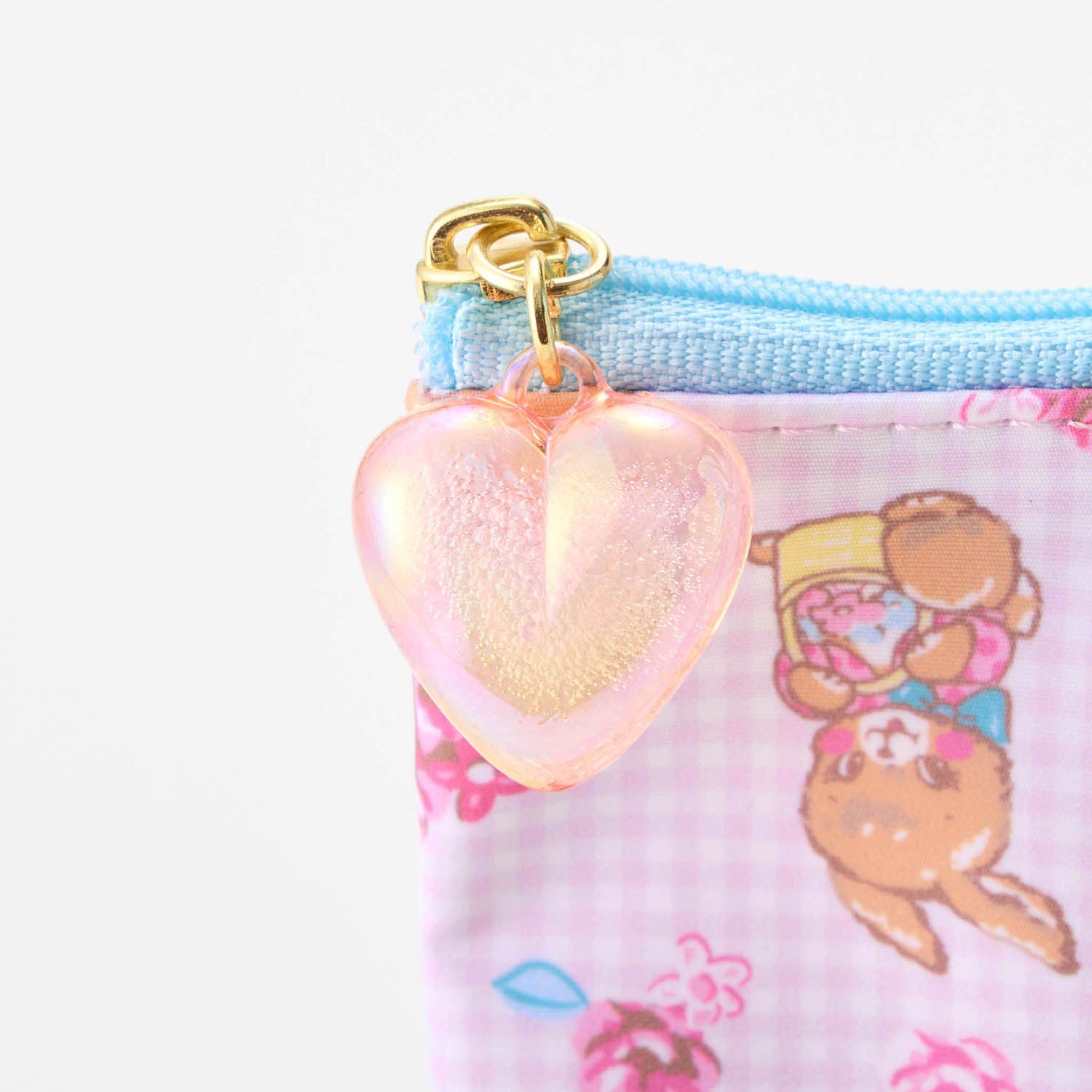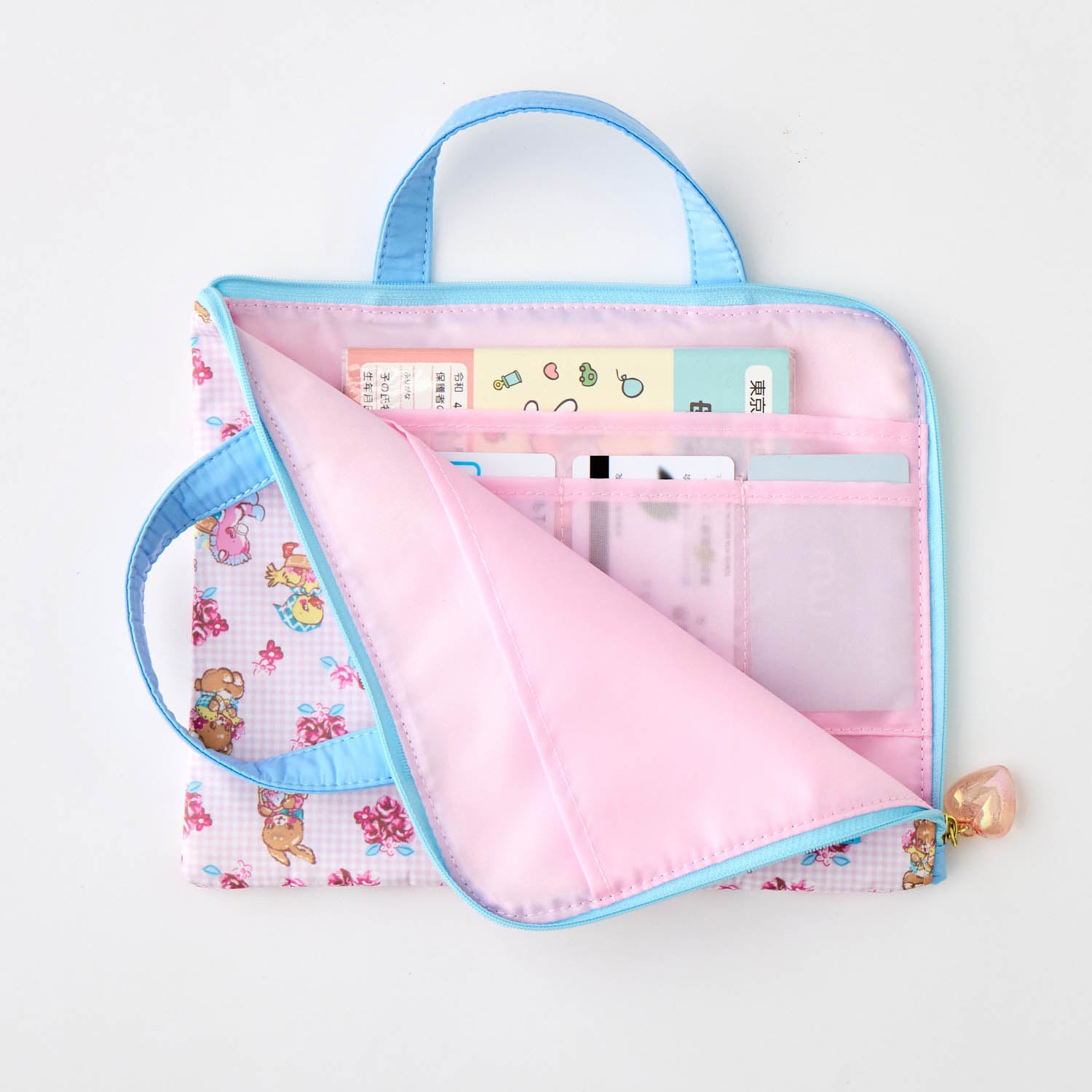 スリムに使えるL字ファスナータイプで、母子手帳以外にも通院や健診などで必要なカード類などが見やすい形で一式入れられます。ファスナー引手がかわいいハートモチーフ。