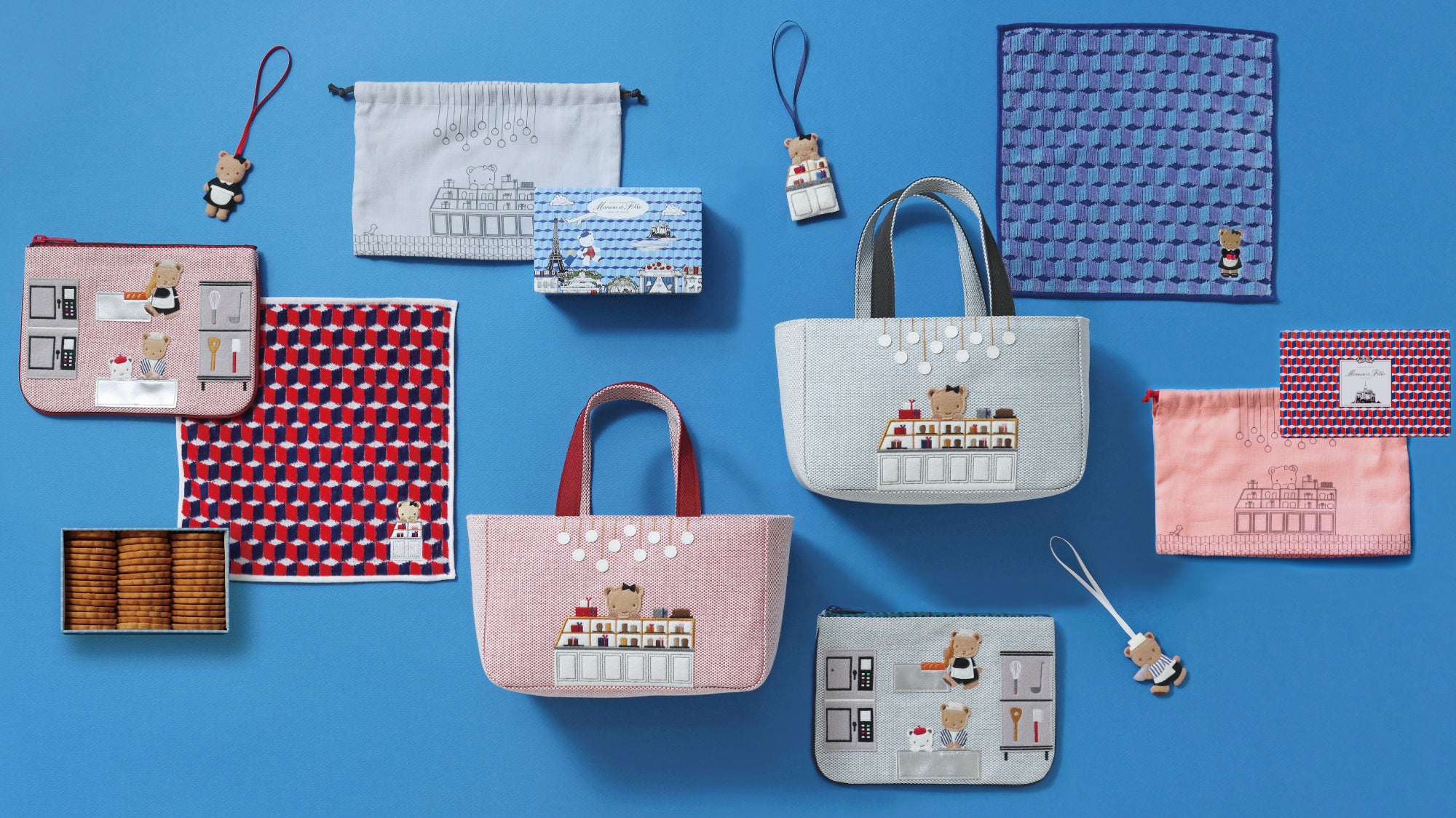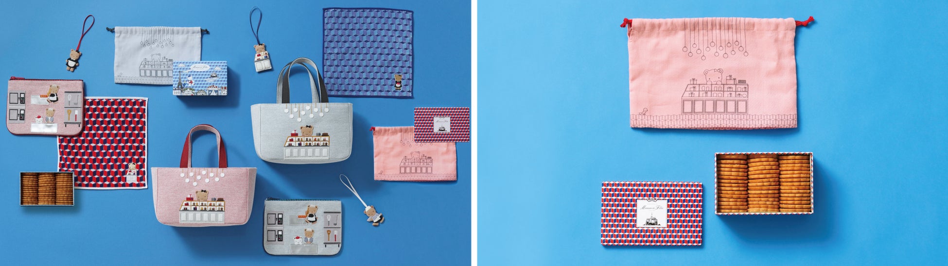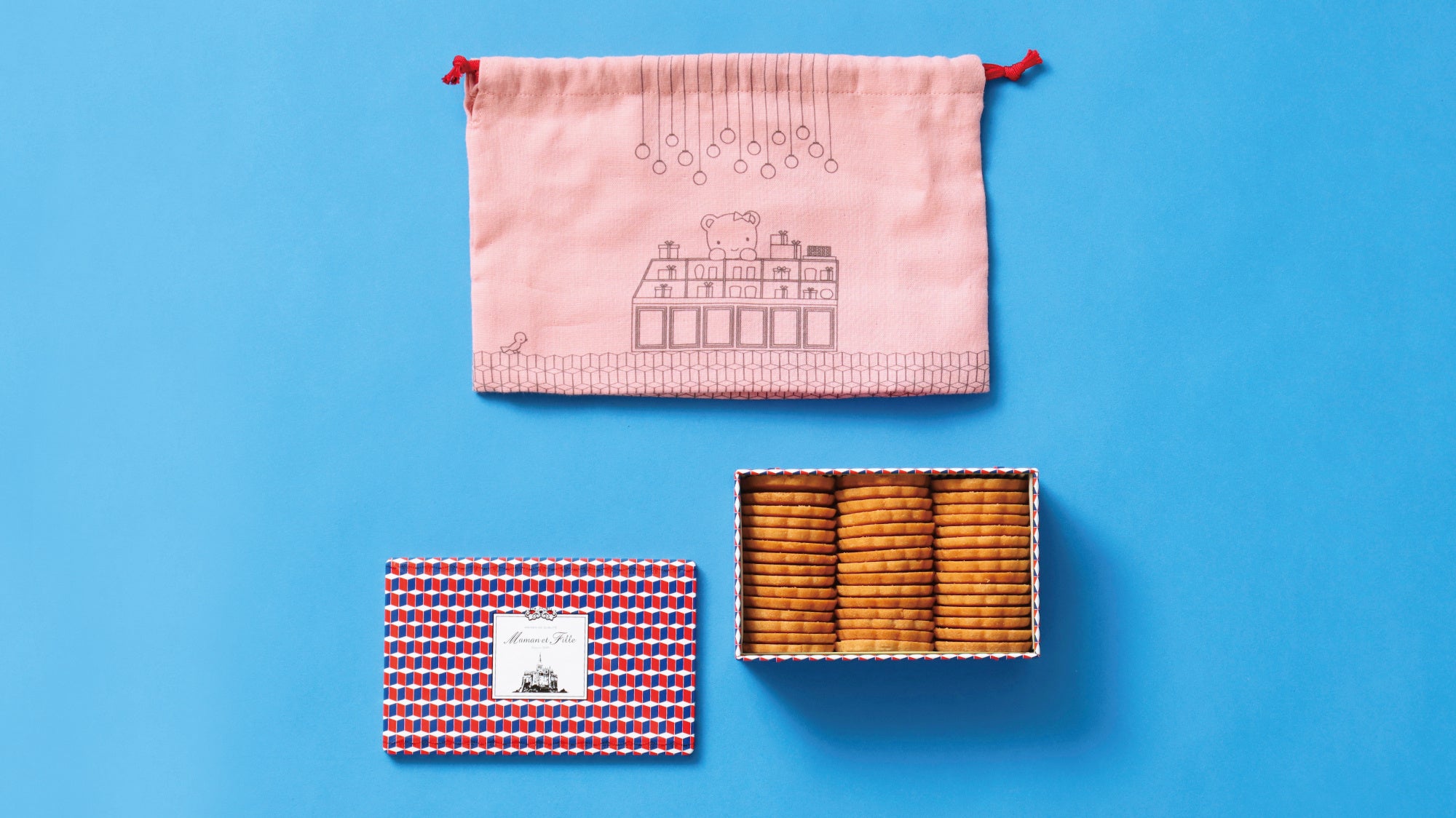 神戸・御影にある焼き菓子専門店「Maman et Fille」とのコラボアイテムを販売。大人気のビスキュイ巾着付きにみらい百貨店限定カラーが登場します。